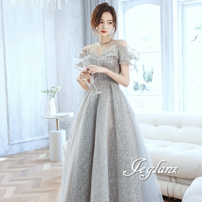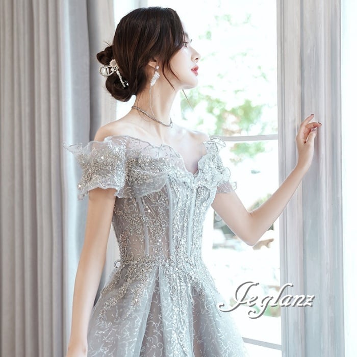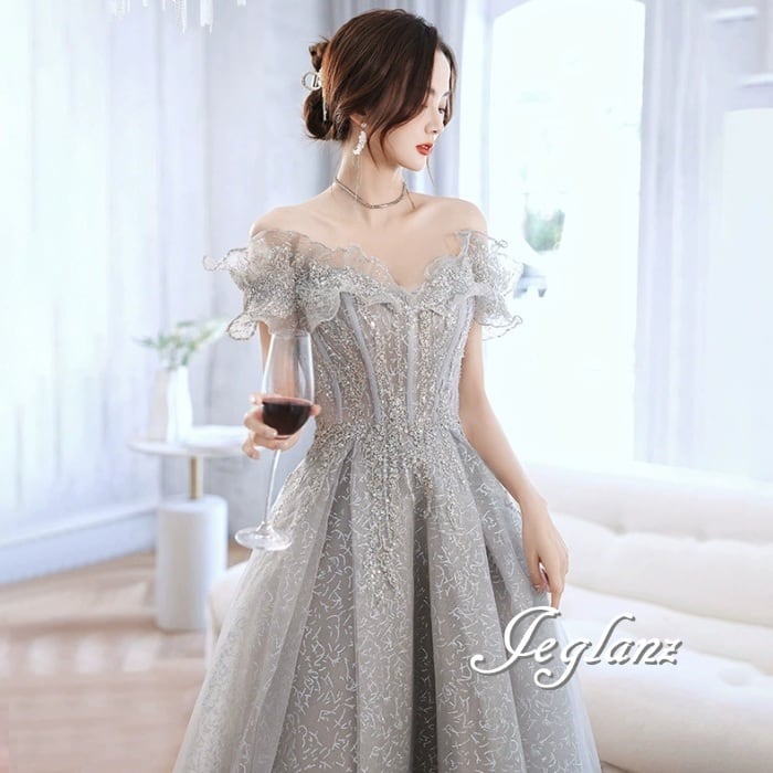 パーティ イブニングドレス オフショル 編み上げ フリル 肌見せ(MA991)ζ