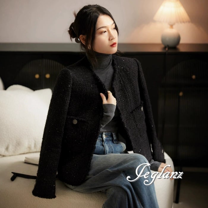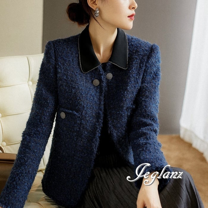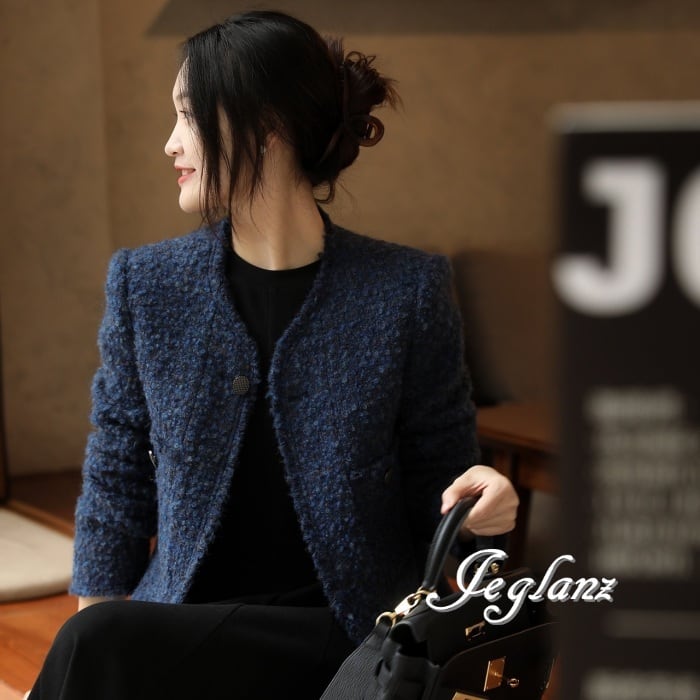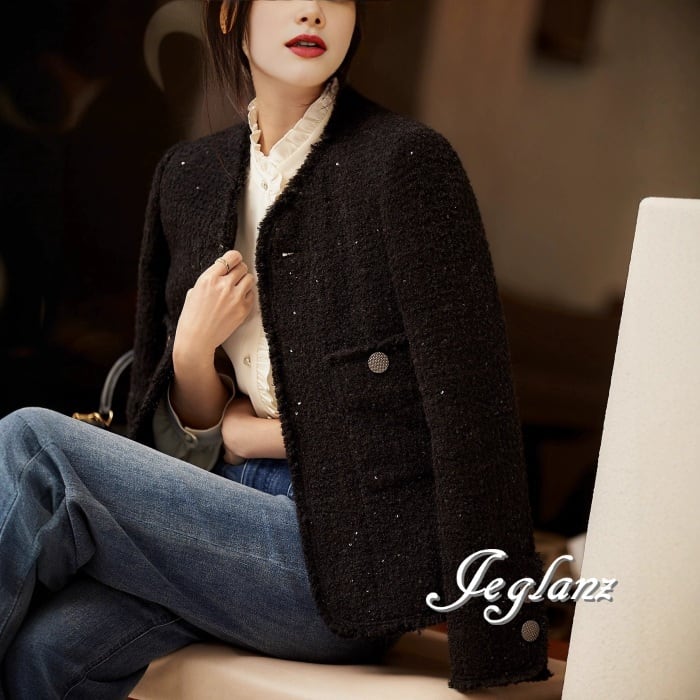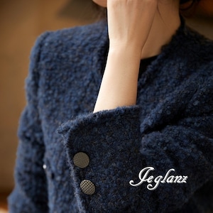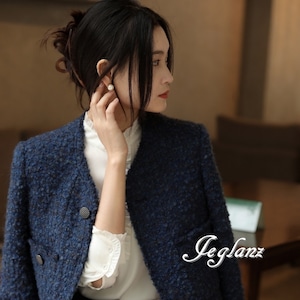 2色 ツイード ニット ジャケット ボタン 光沢 クラスアップ感 ♪ (MB003)τ