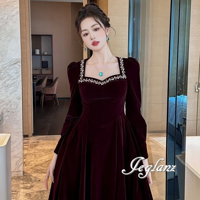 パーティ ベルベット調 ワンピース ドレス 刺繍 レース クラシカル(MB021) η