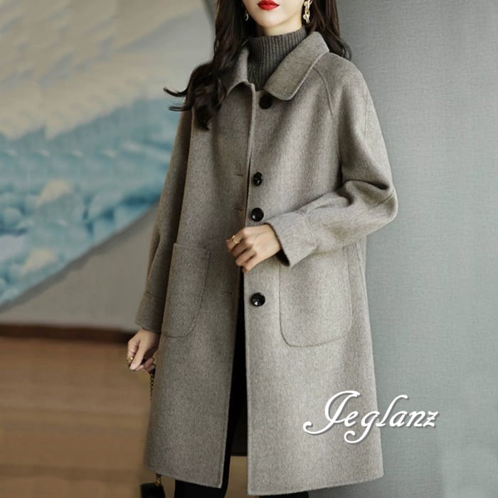 5色 ニット ロング コート 襟付き ボタン ポケット ヘリンボーン(MB022)τ