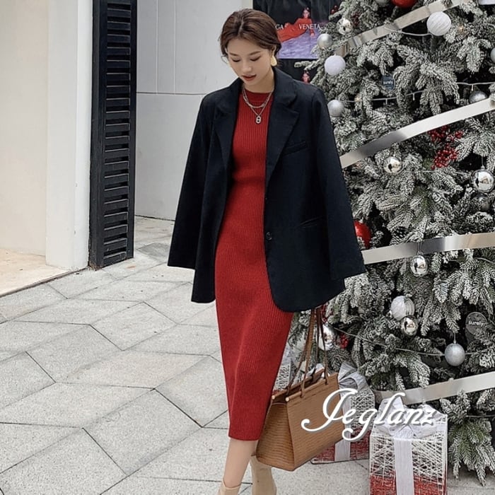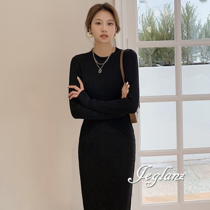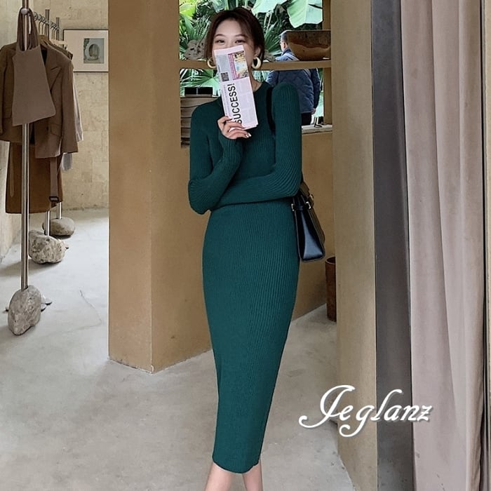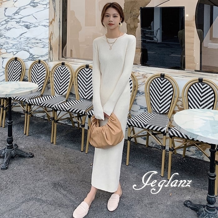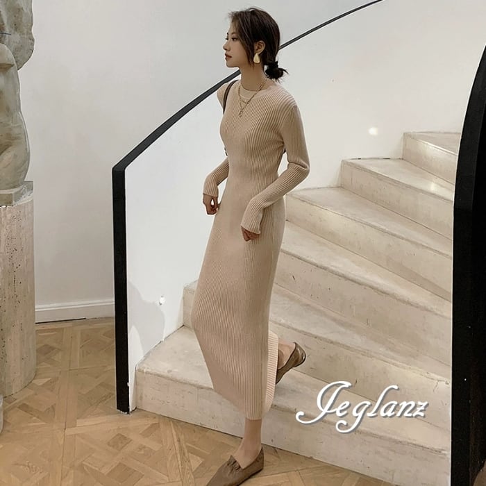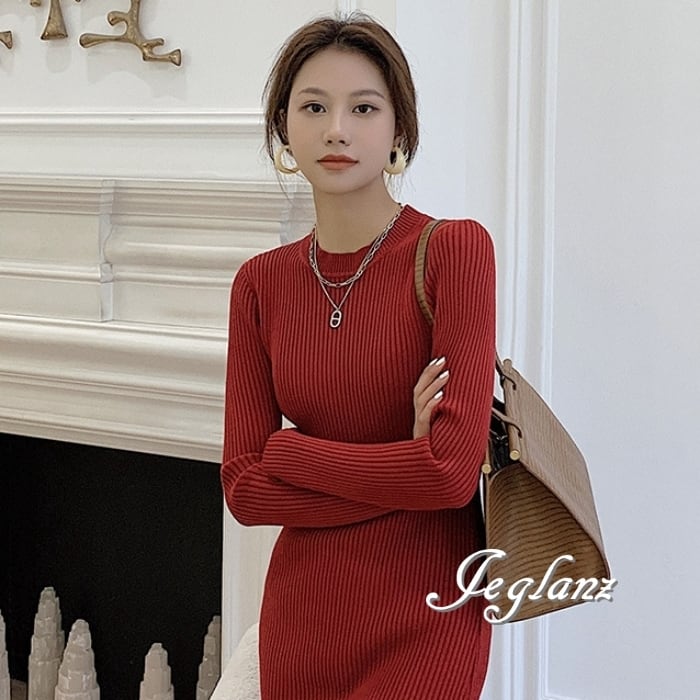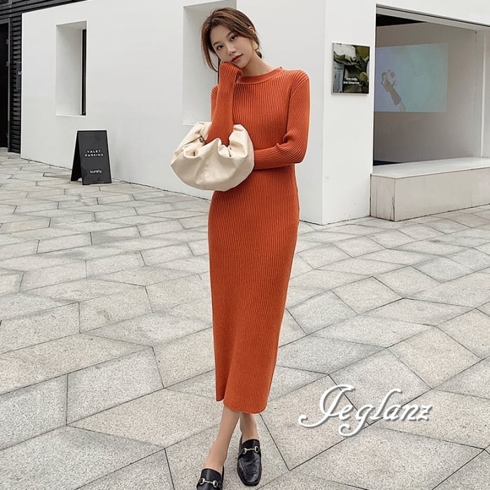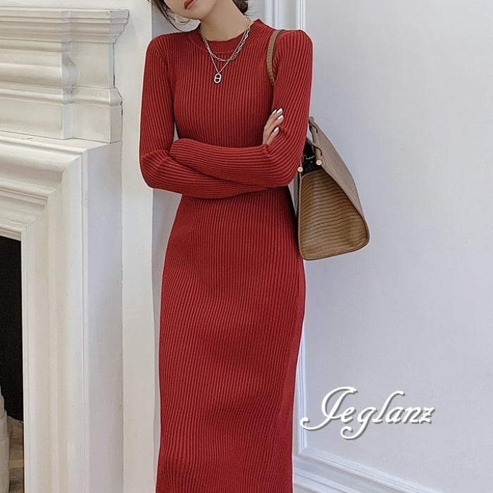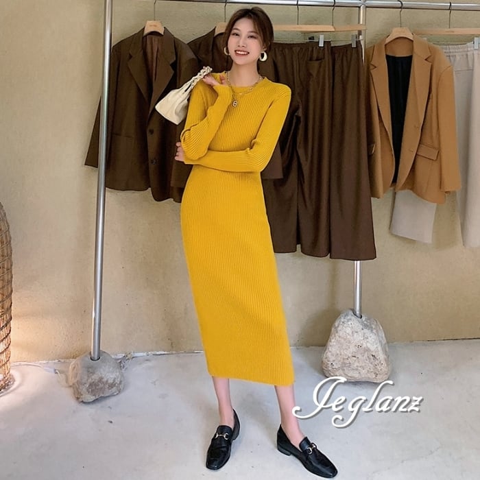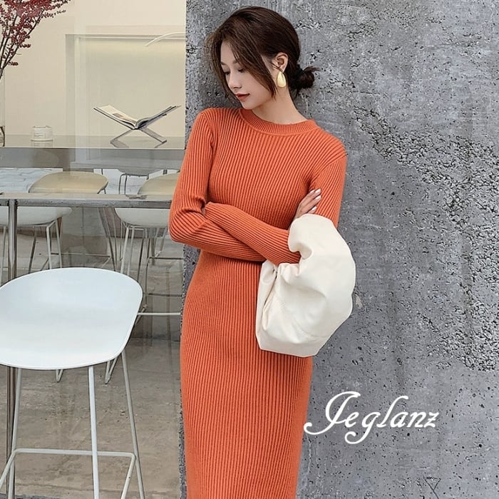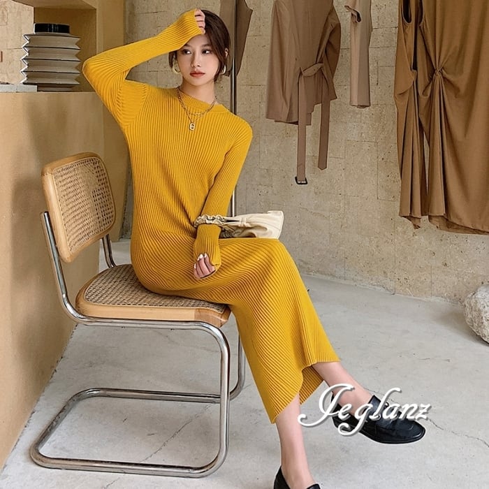 8色 リブ ニット ワンピース スリム きれいめ シンプル派(MB063)γ