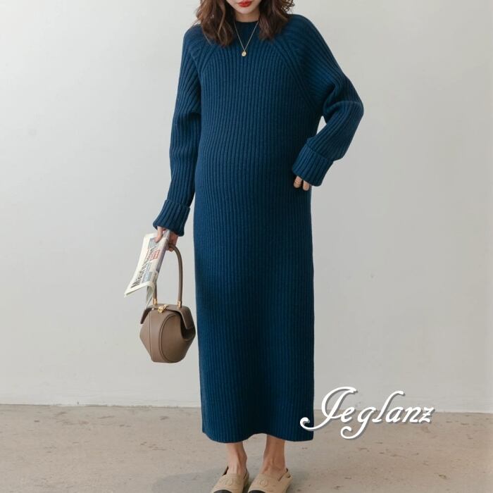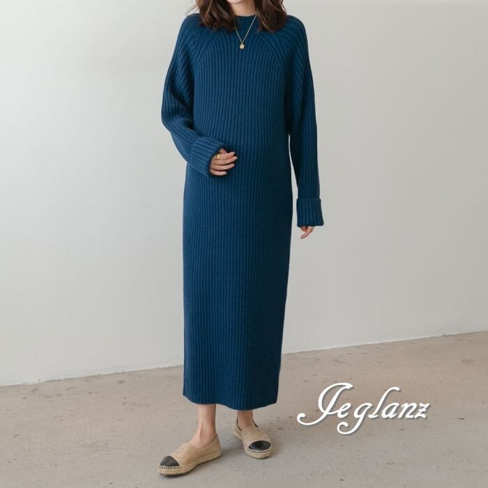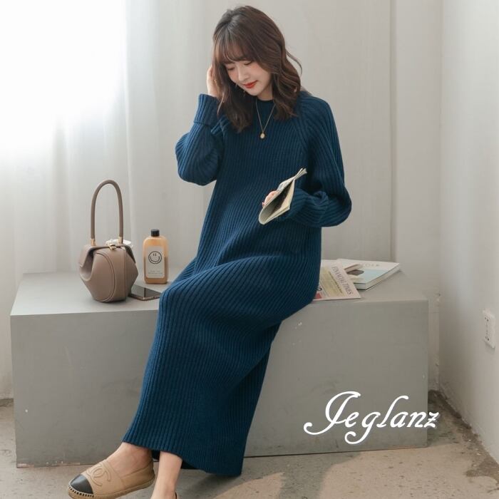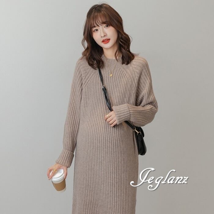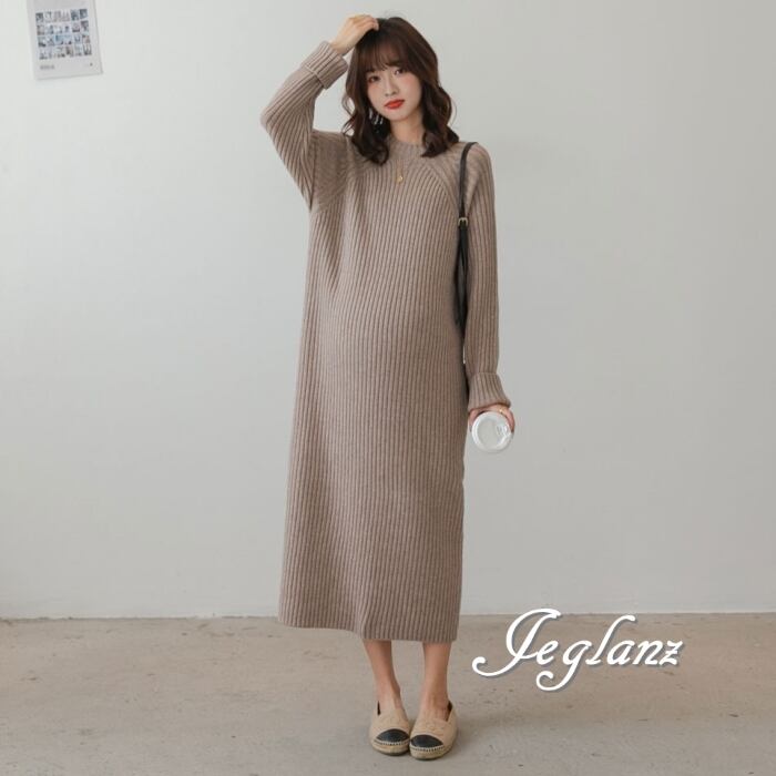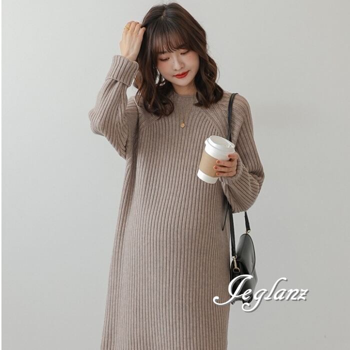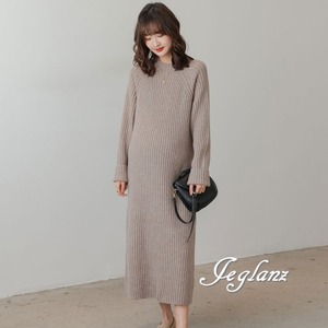 2色 リブ ニット ワンピース サック きれいめ シンプル派(MB067)γ