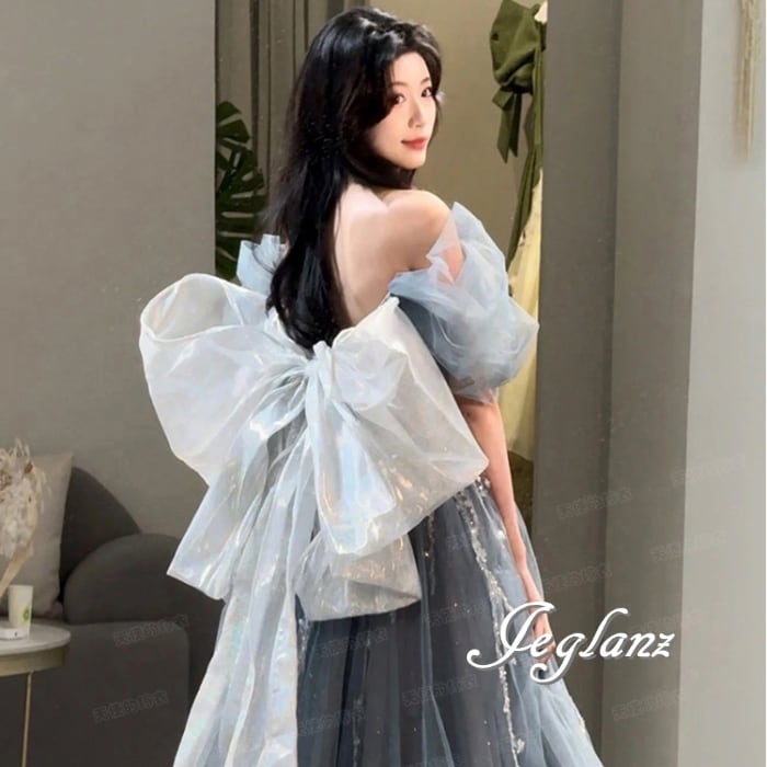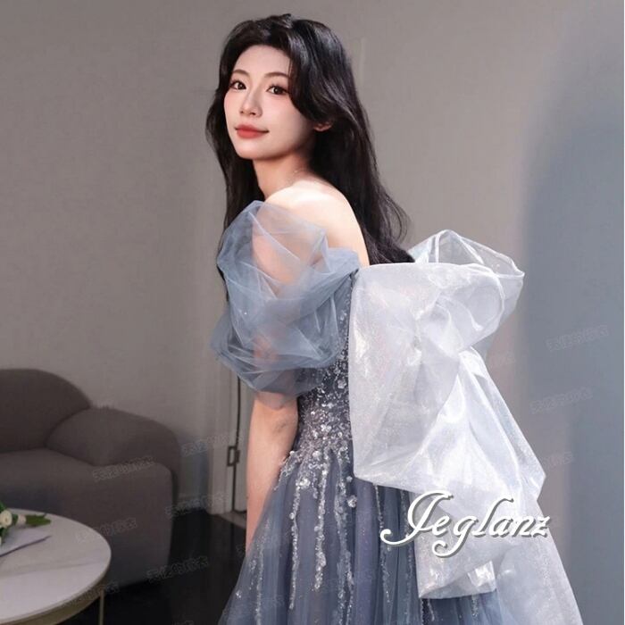 ウエディング カラードレス オフショル 背中リボン チュール(MB091)π