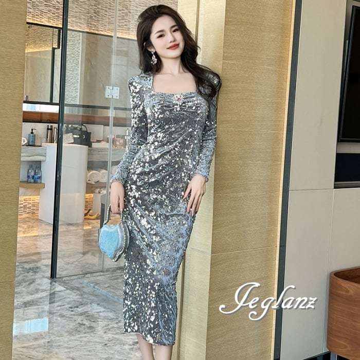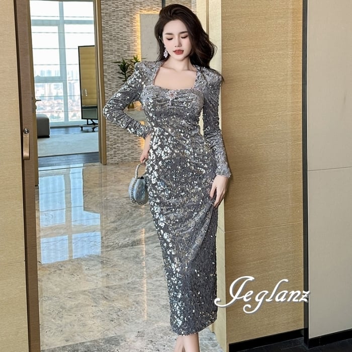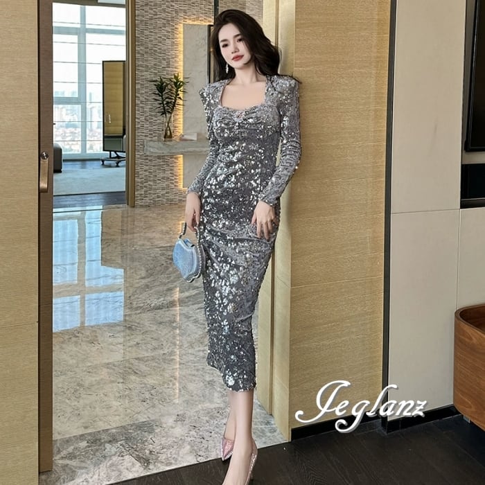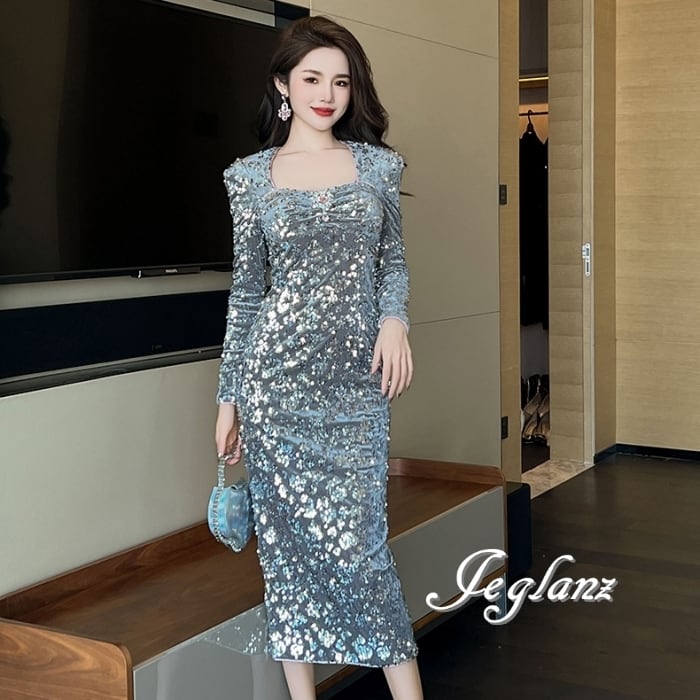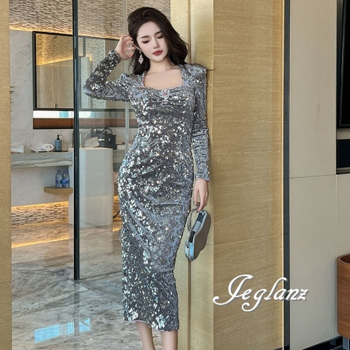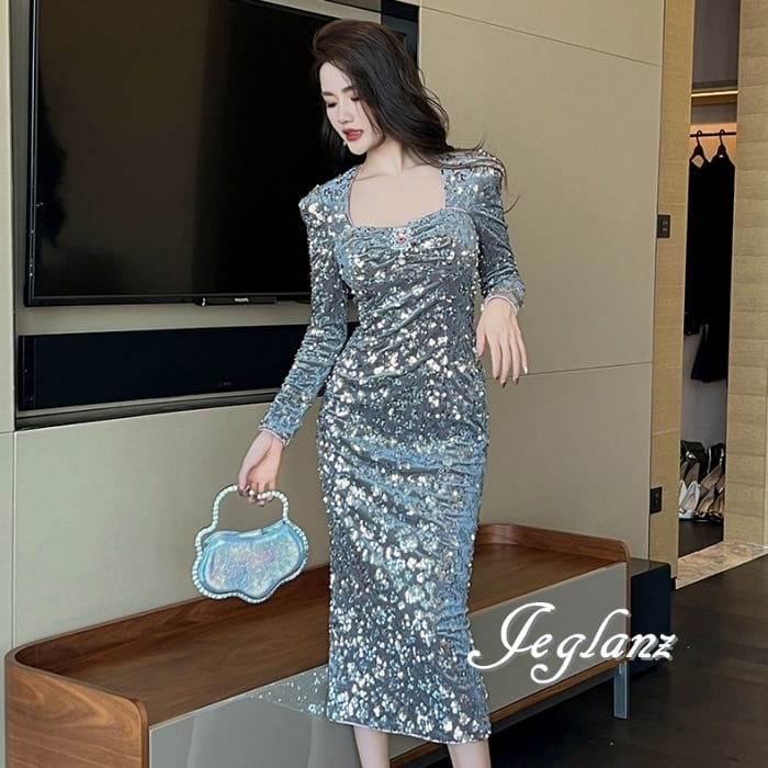 パーティ ドレス ワンピース スリム スパンコール 光沢感(MB102)ζ