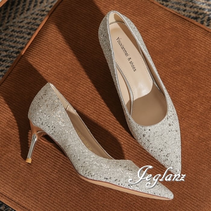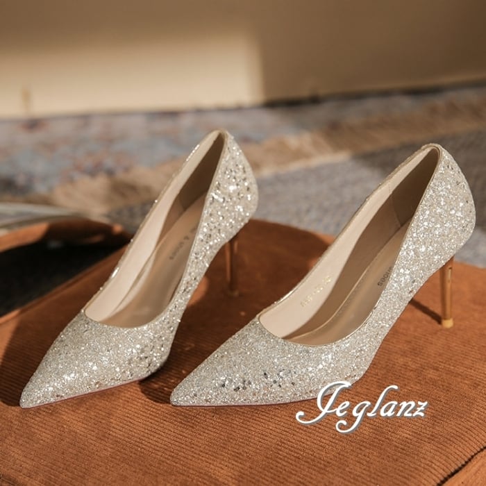 3色 パーティ パンプス ハイヒール 光沢感 高さ 5cm/6.5cm/8.5cm(MB113)χ