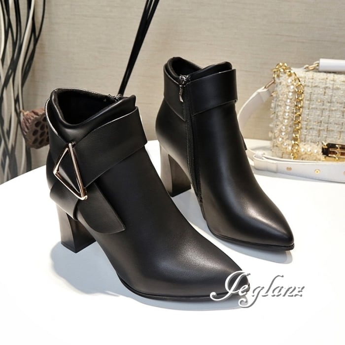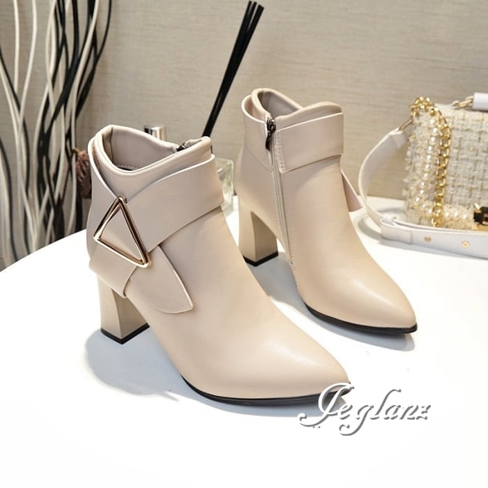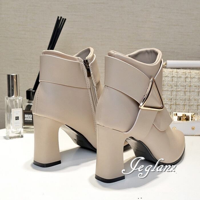 2色 ミドル ブーツ ヒール サイドファスナー PUレザー フェイク(MB115)ω