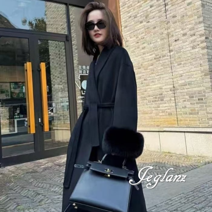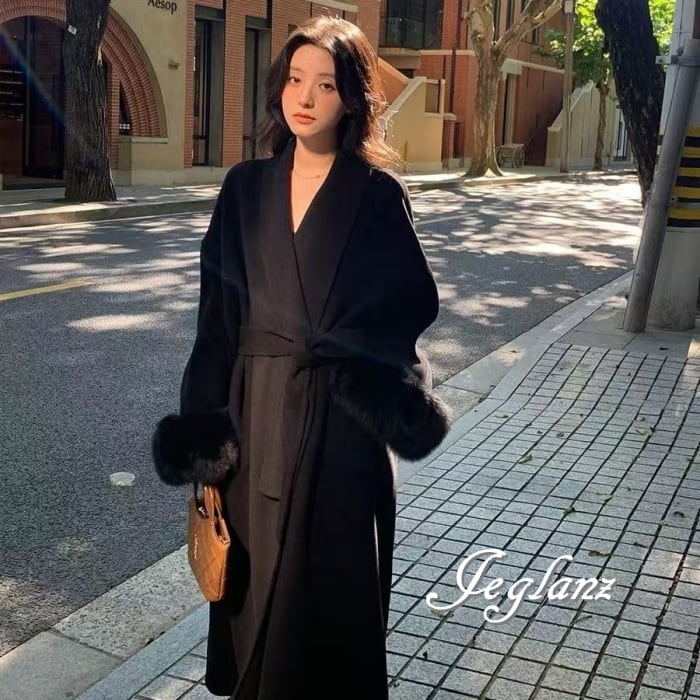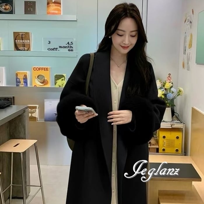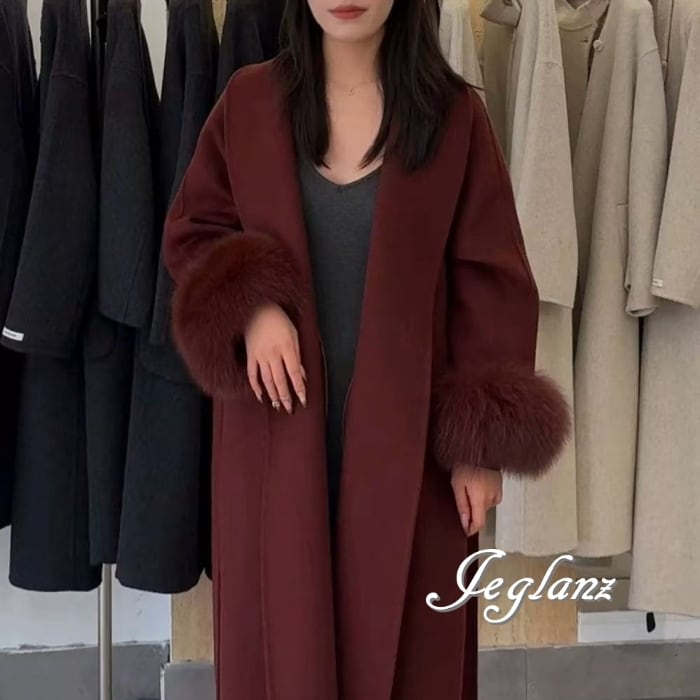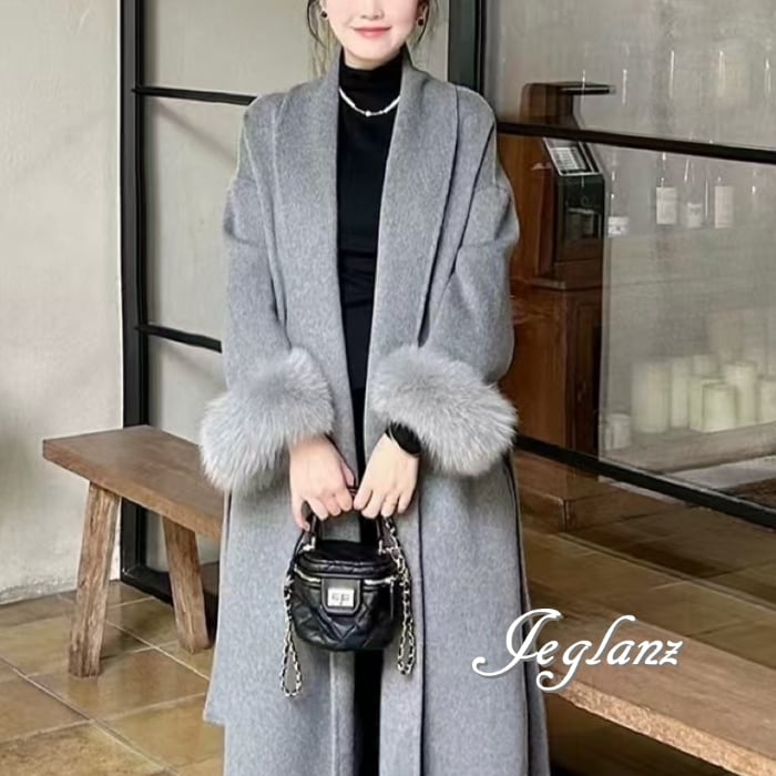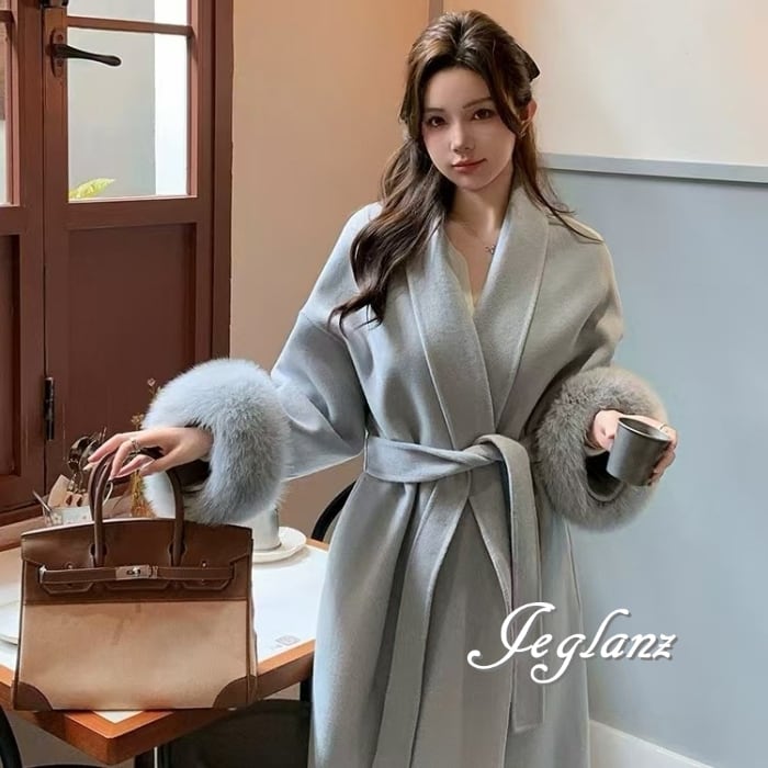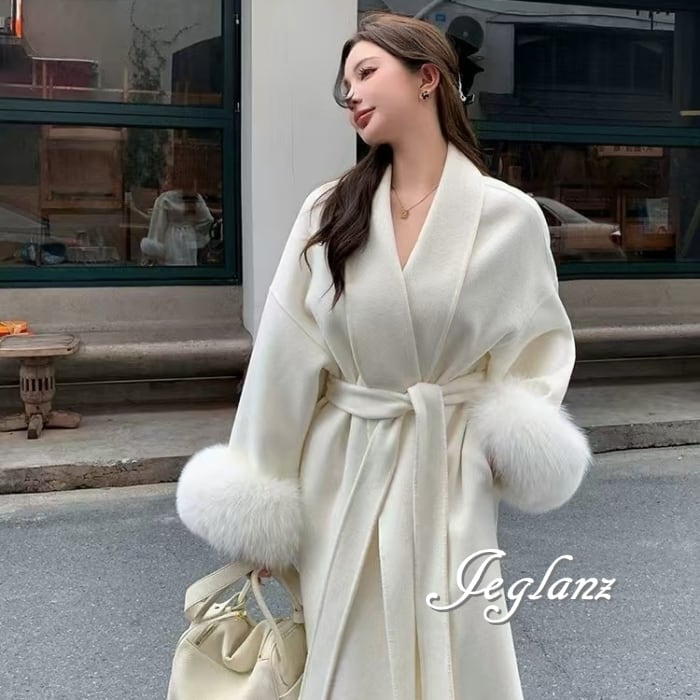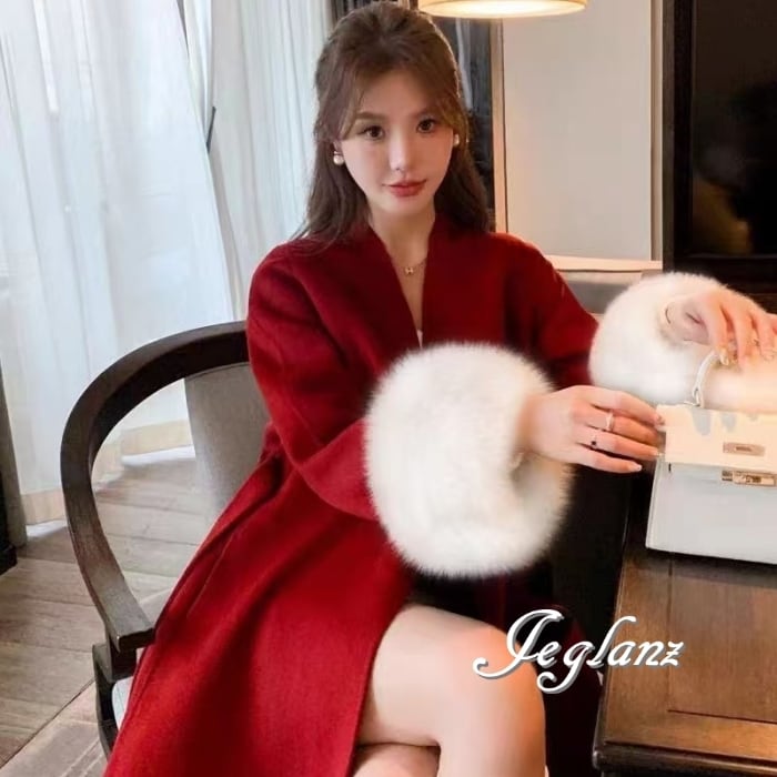 ロング丈 ニット コート 襟付き ボリュームファー 共ベルト ファンシー 6色(MB132)τ