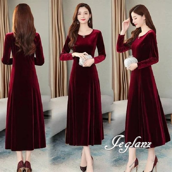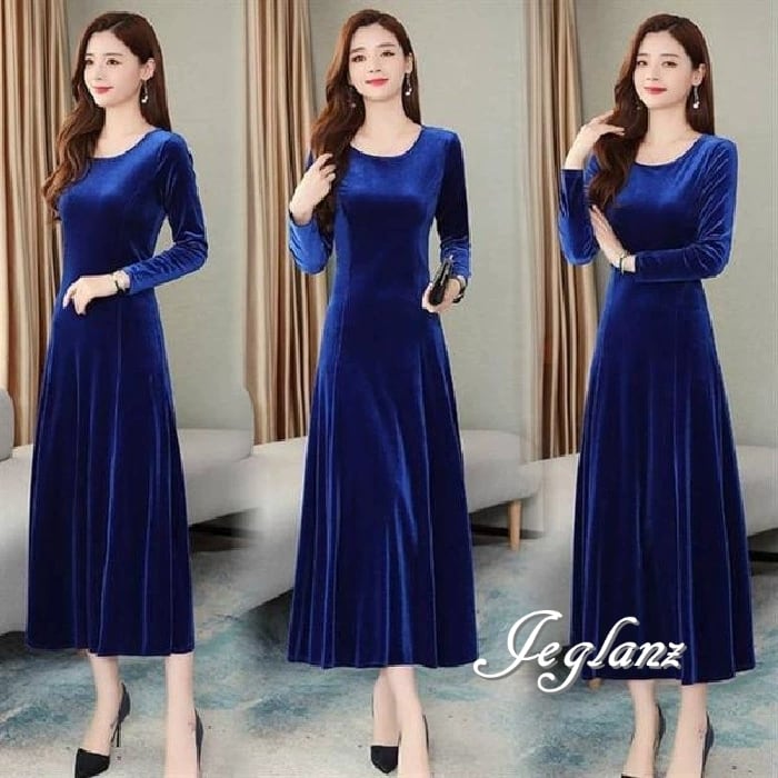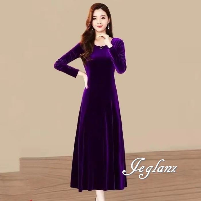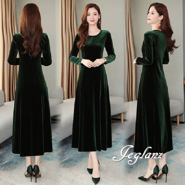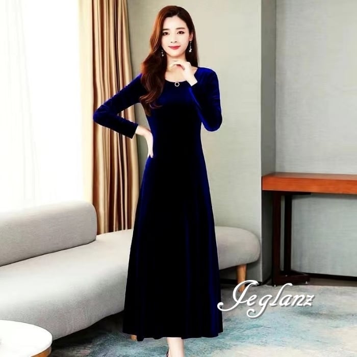 6色 ベルベット調 ワンピース 長袖 ドレス きれいめ シンプル派(MB142) η
