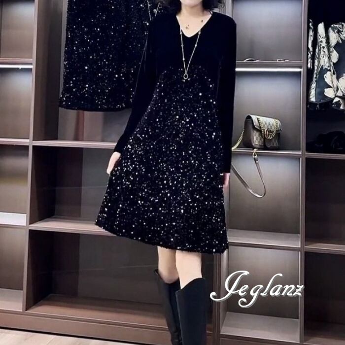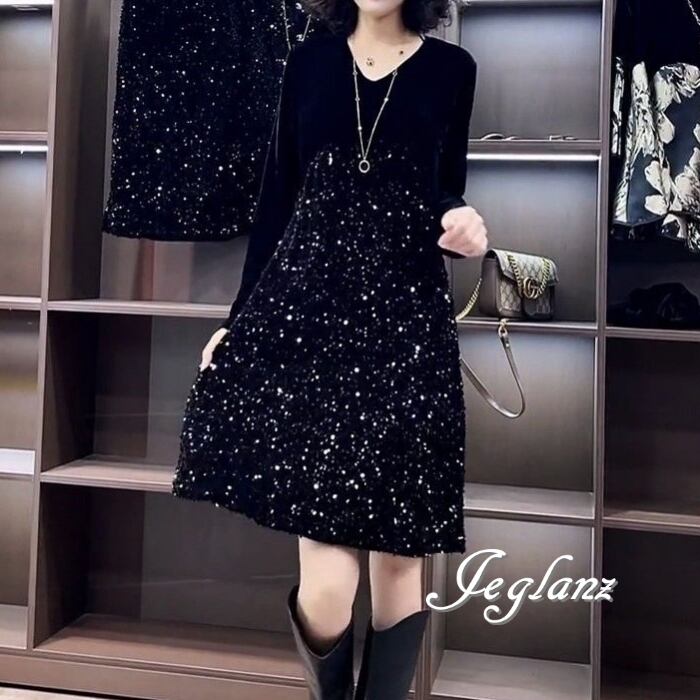ベルベット調 ワンピース ドレス ラメ キラキラ 光沢感 大きいサイズ(MB144) η