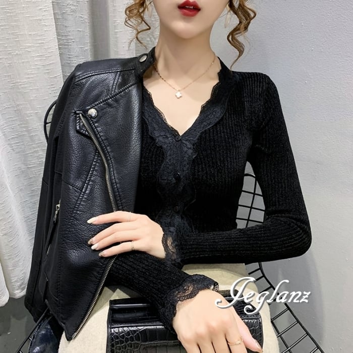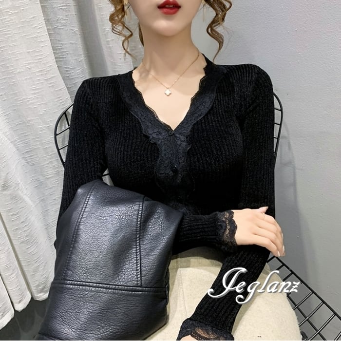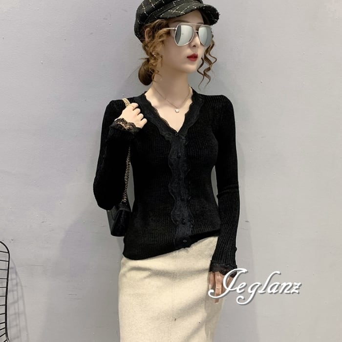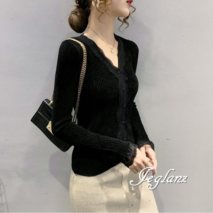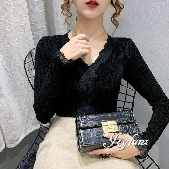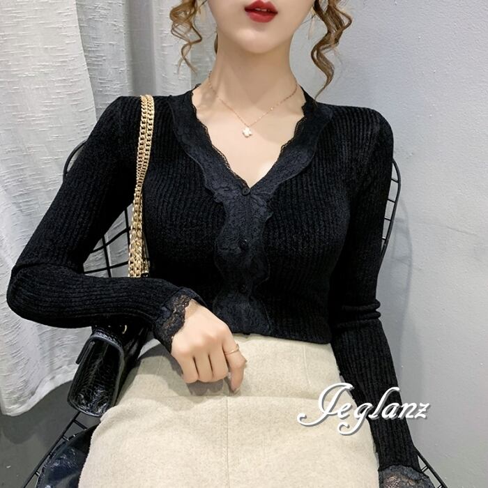 ベルベット調 カットソー カーディガン スカラップ レース(MB146)σ,ς*