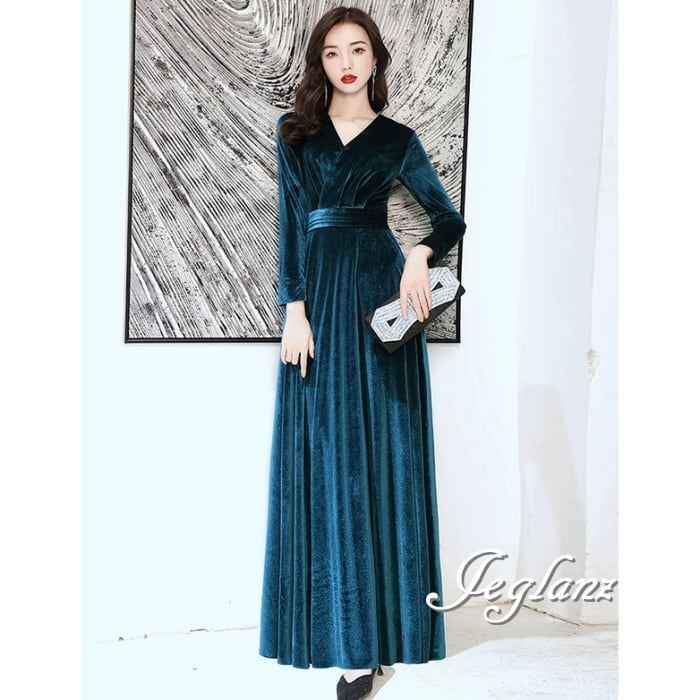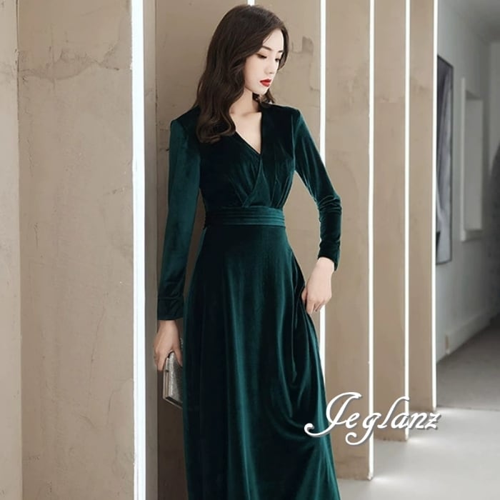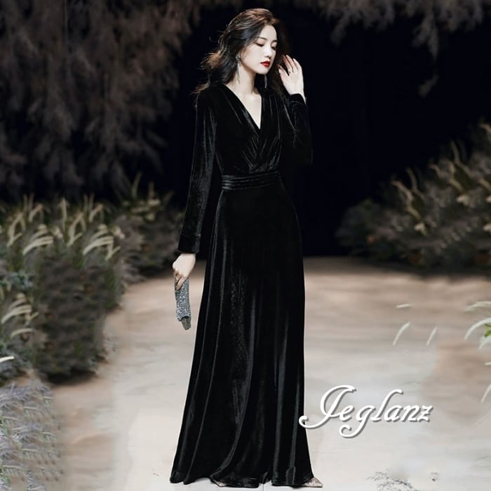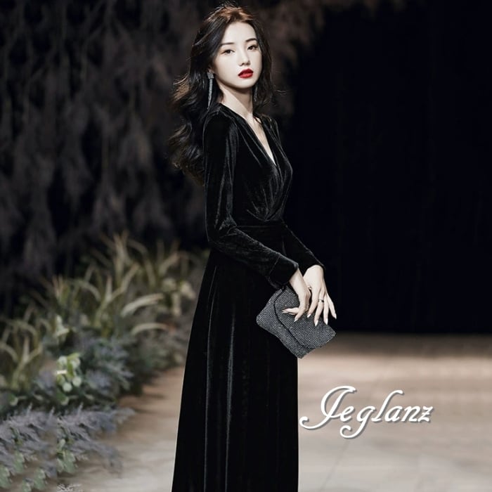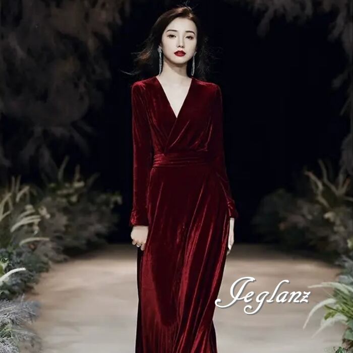 4色 パーティ イブニングドレス ベルベット調 スリット 光沢感(MB152)η
