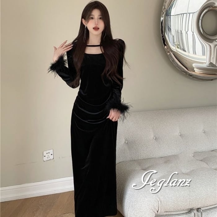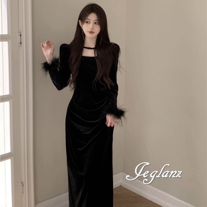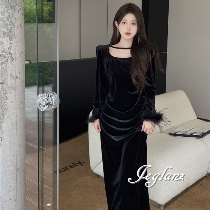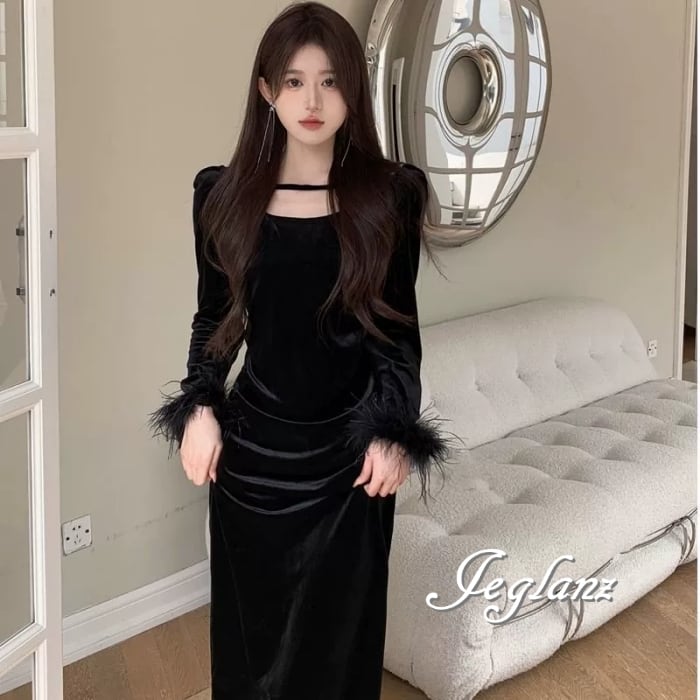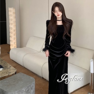 ベルベット調の光沢が美しいワンピースドレス