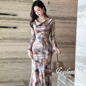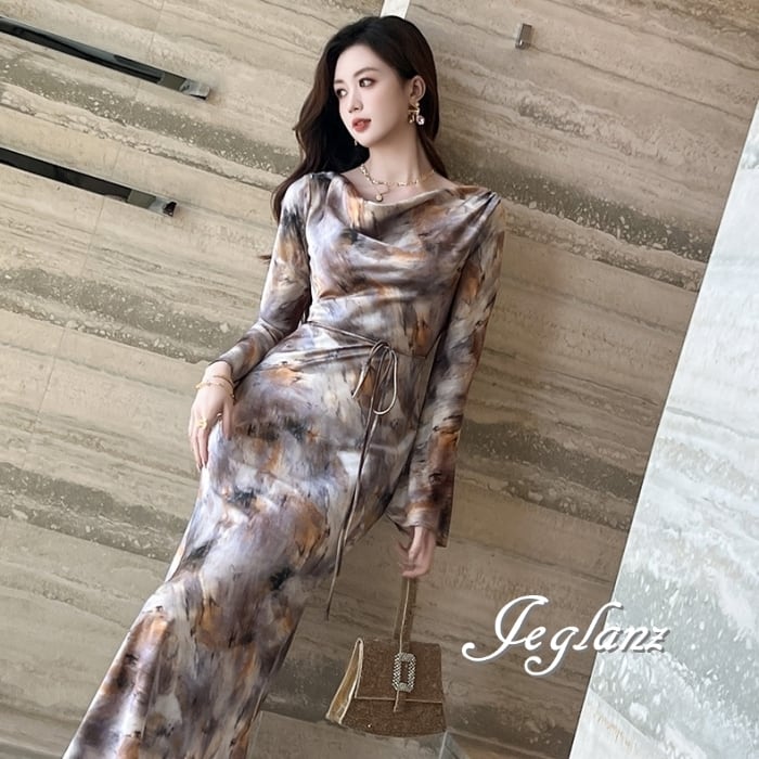 ワンピース ドレス タイダイ柄 バックシャン 紐ベルト 肌見せ ♪(MB173)ζ