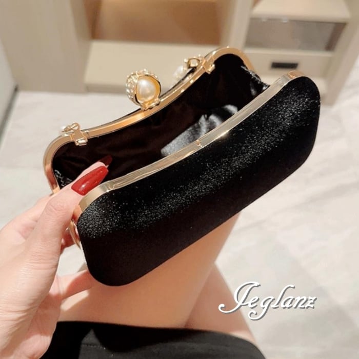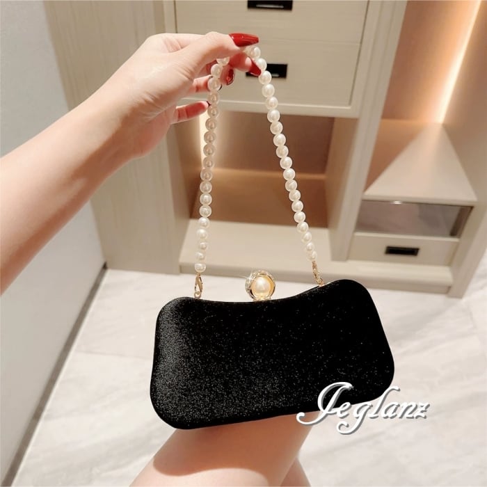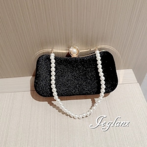 パーティ 結婚式 バック ベルベット調 パール 持ち手 2way 光沢(MB191)ν
