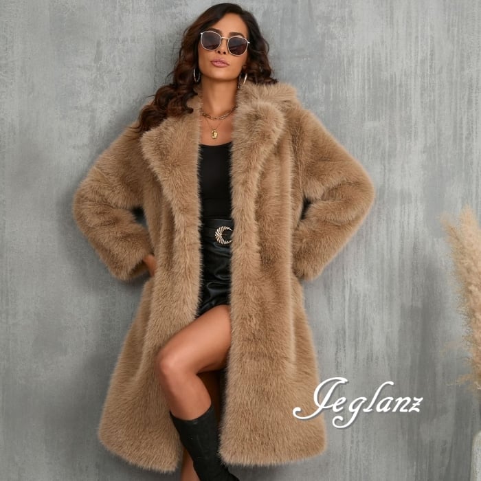 3色 エコファー ミドル丈 ファーコート アウター 襟付き 着映え(MB196)φ