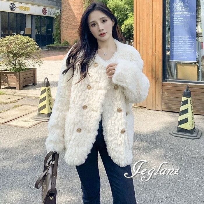 ファー エコファ ジャケット ブルゾン アウター ゴールドボタン( MB211)φ