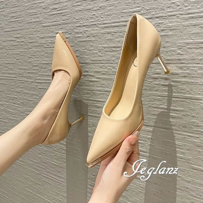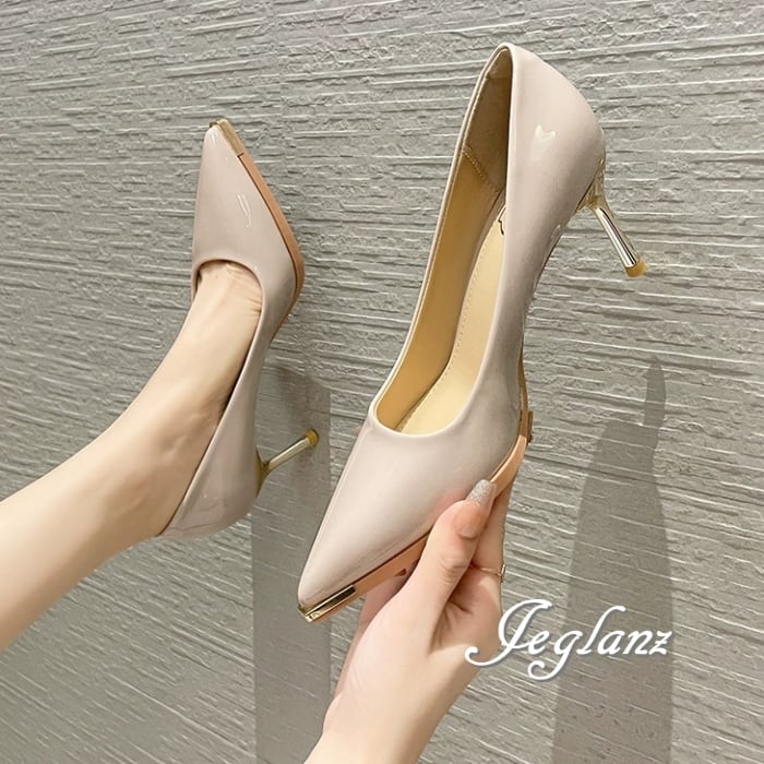 3色 パーティ パンプス ハイヒール エナメル ポインテッドトゥ(MB245)χ
