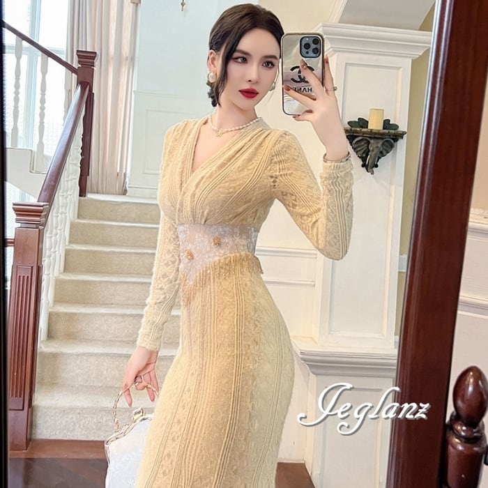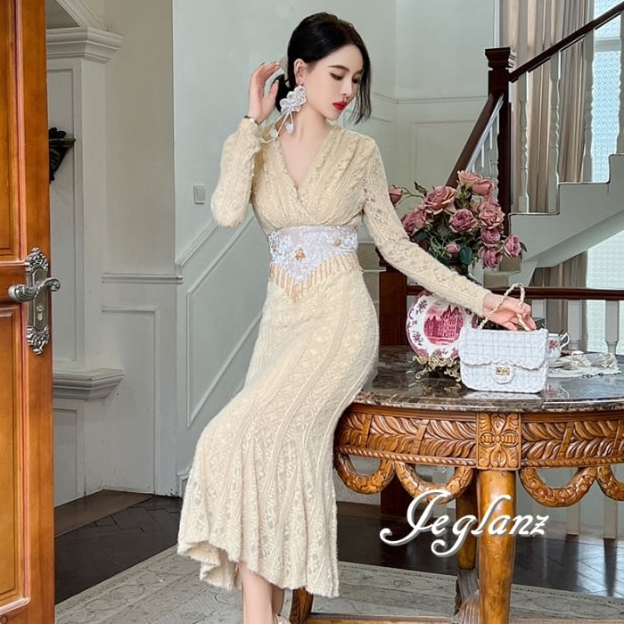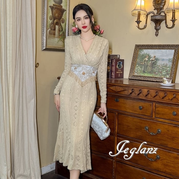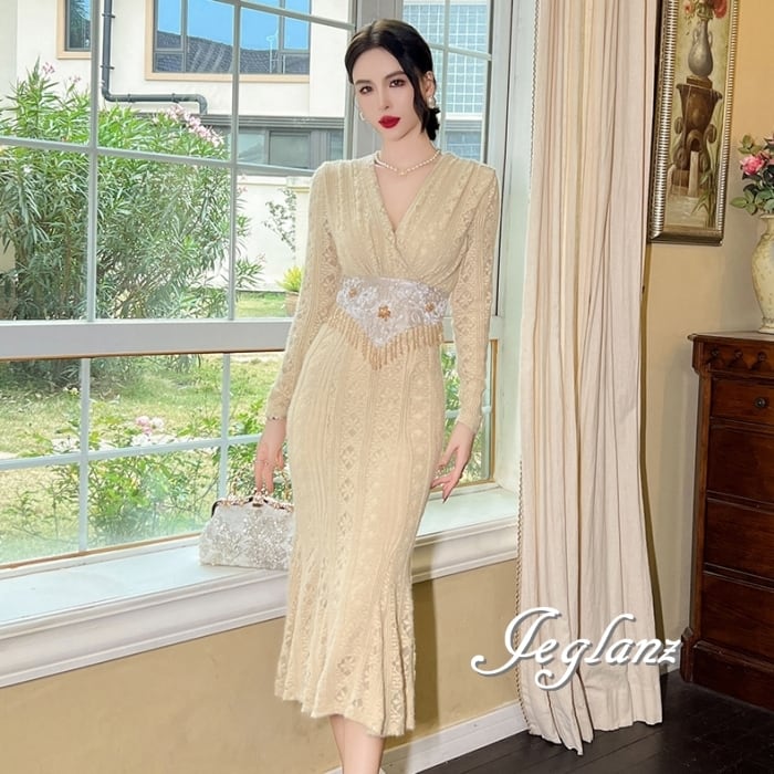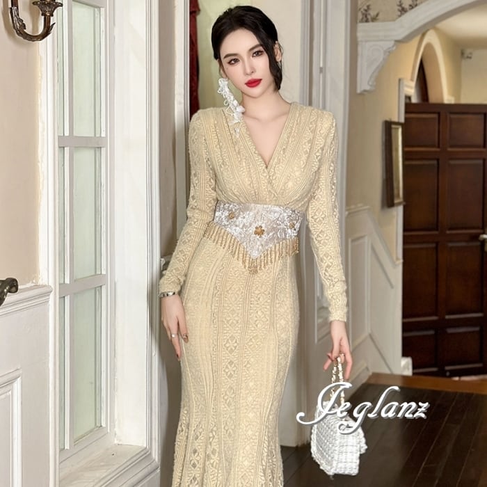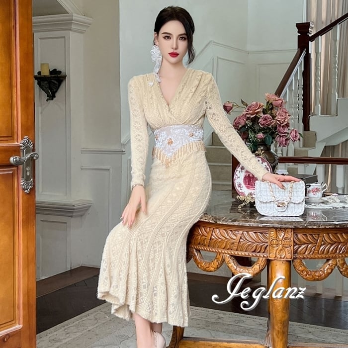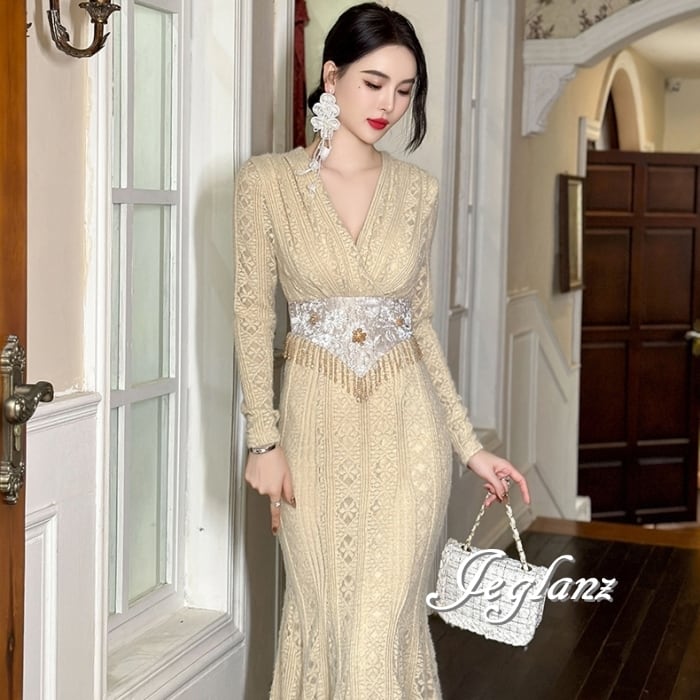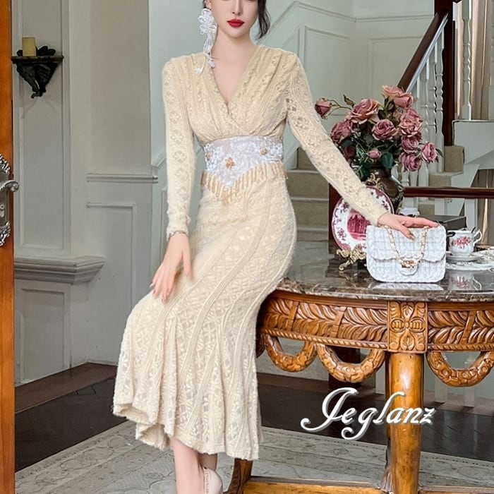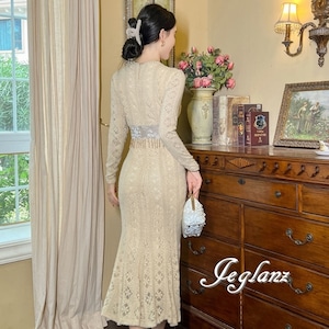透かしレースに優美な刺繍をあしらったドレス