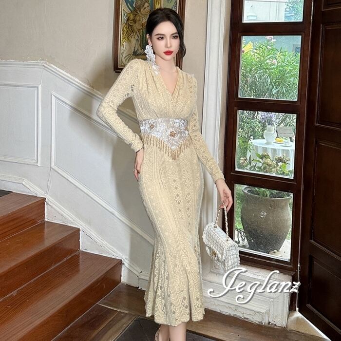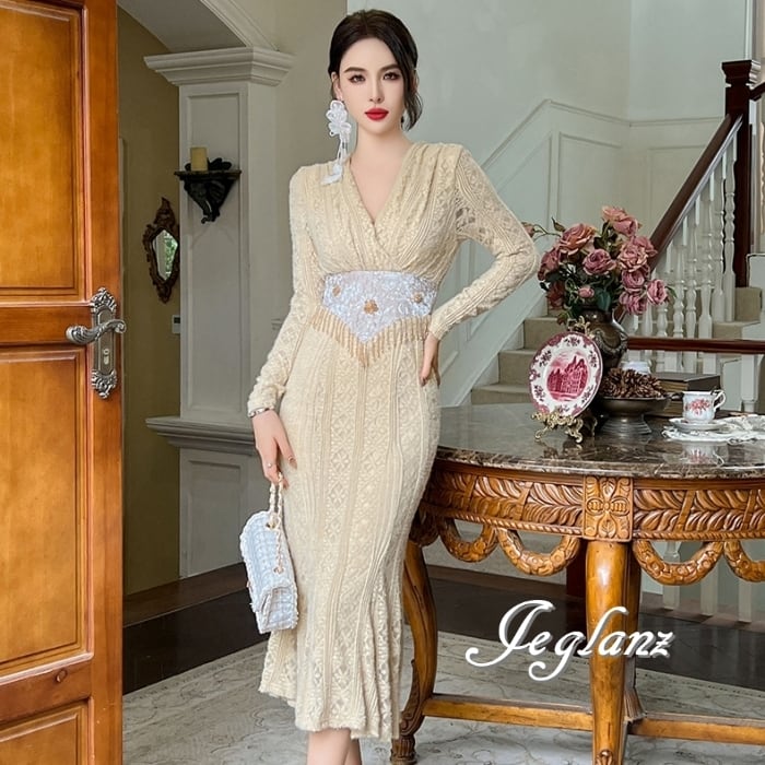 パーティ ドレス ワンピース 刺繍 レース ビジューフリンジ ♪ (MB253)ζ