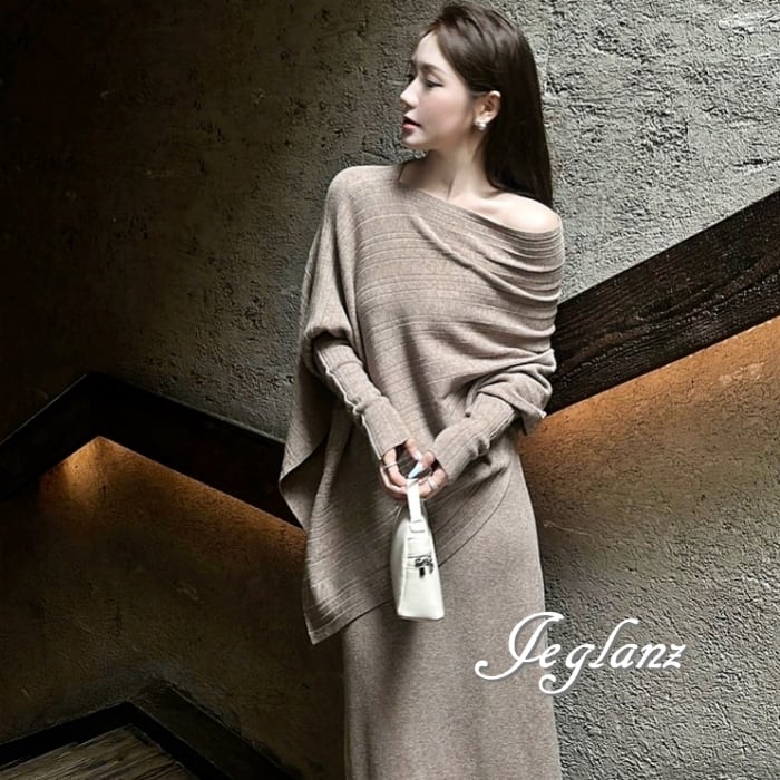 セットアップ 2点 ニット デザイン トップス マキシ スカート ♪(MB261)λ