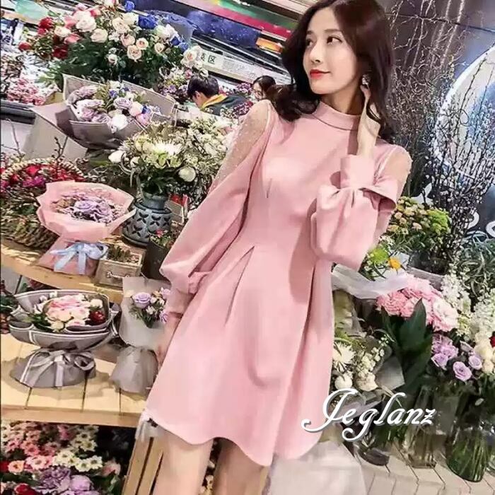 2色 パーティ ドレス ワンピース 水玉 シアー 背中 リボン ♪(MB273)ζ