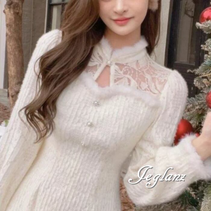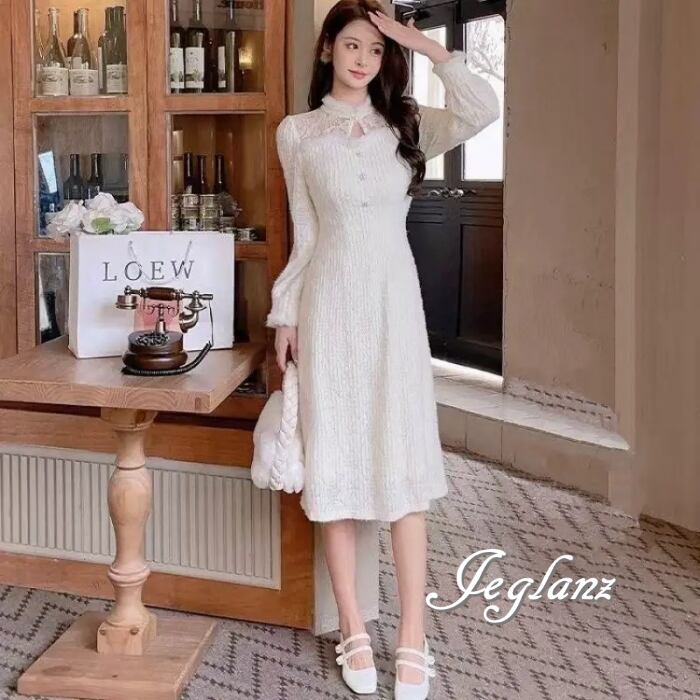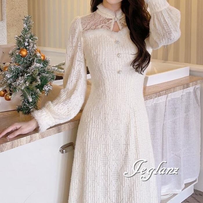 パーティ ニット ワンピース フェザードレス 刺繍 レース(MB275)ζ