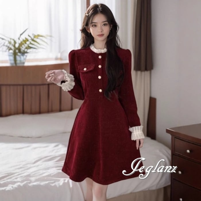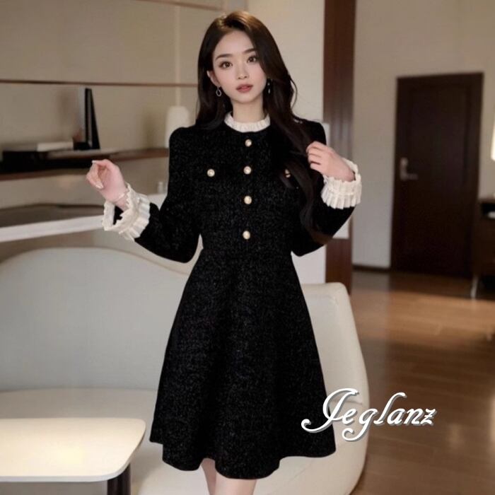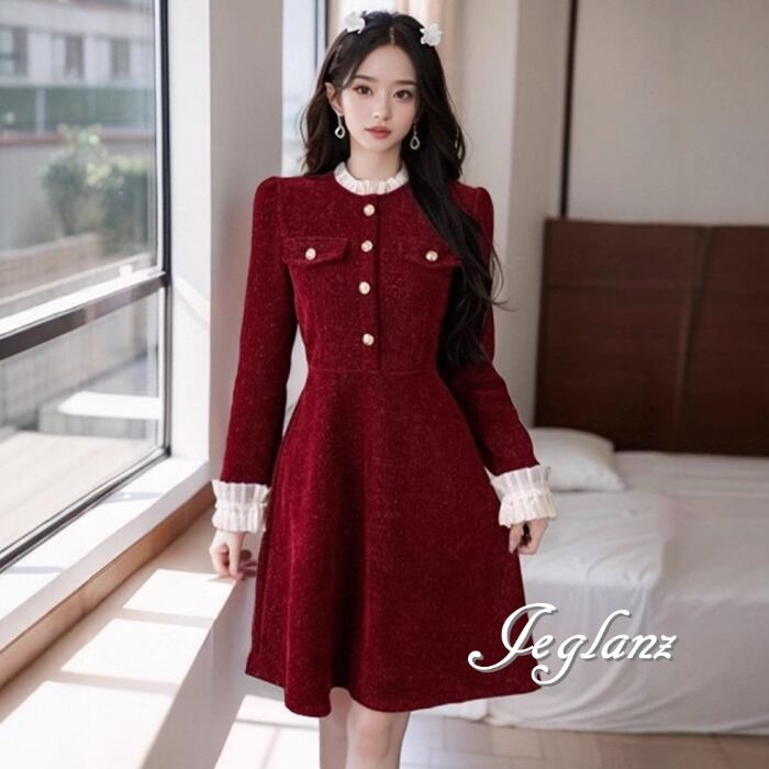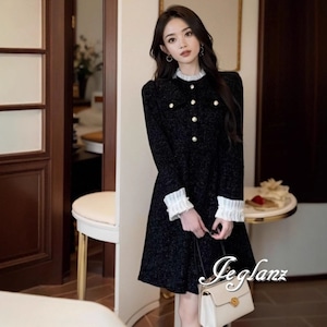 ベルベット調 バイカラー ワンピース ドレス クラシカル 2色 ♪(MB291)η