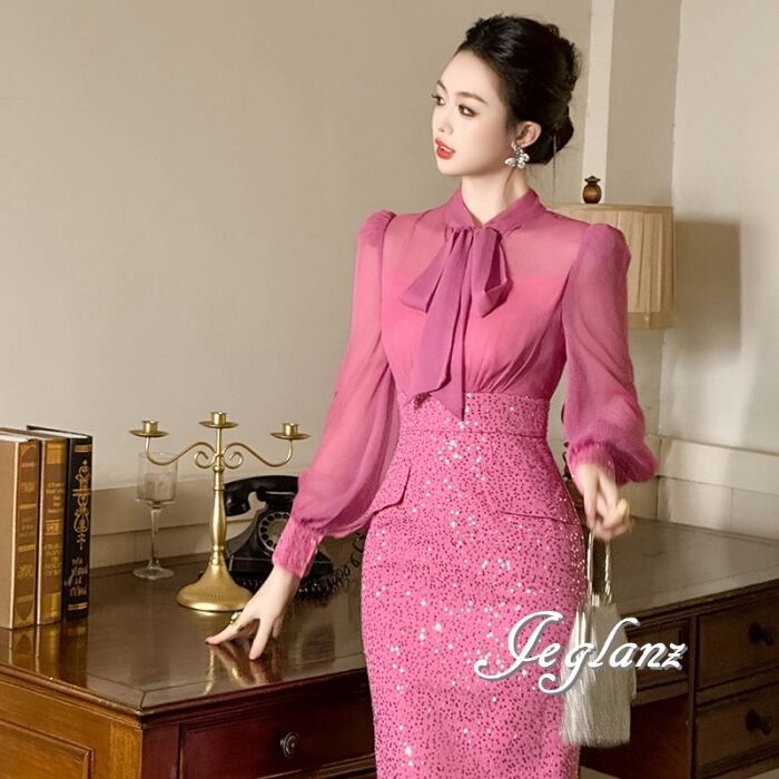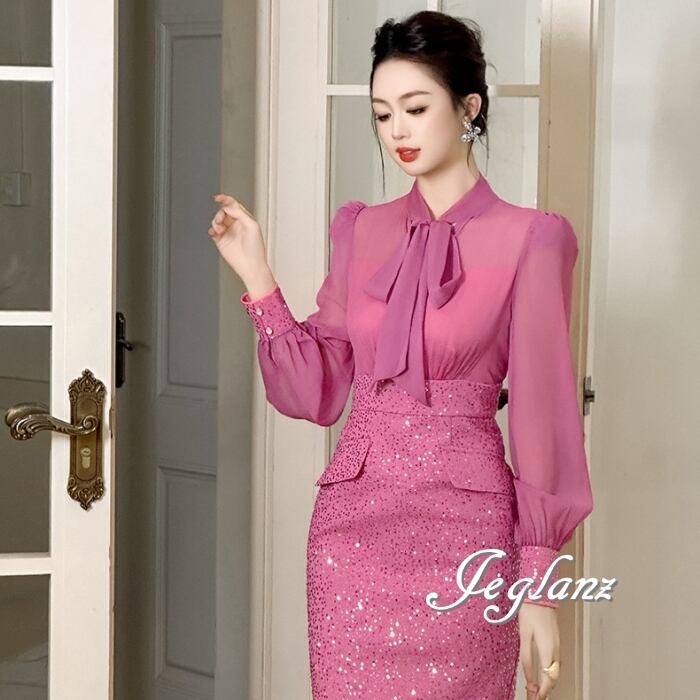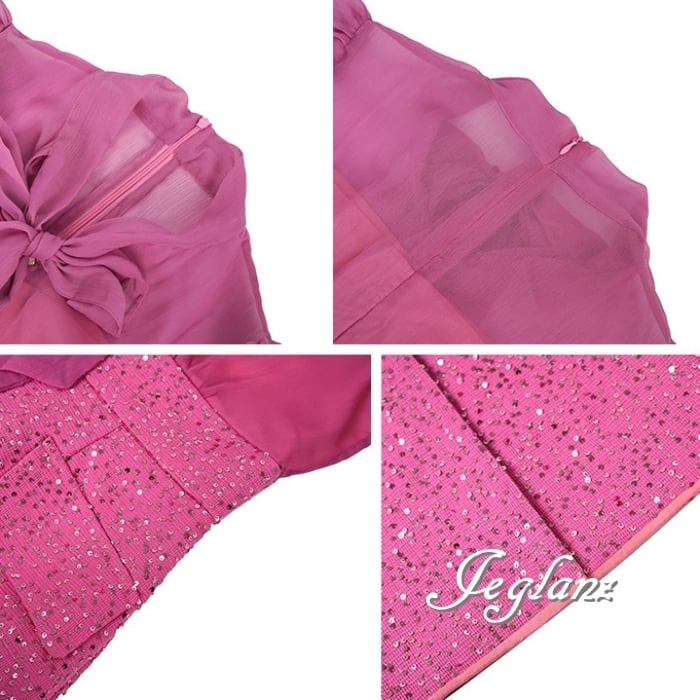 パーティ ドレス フェイク ボウタイ ワンピース スパンコール 光沢感(MB301)ζ