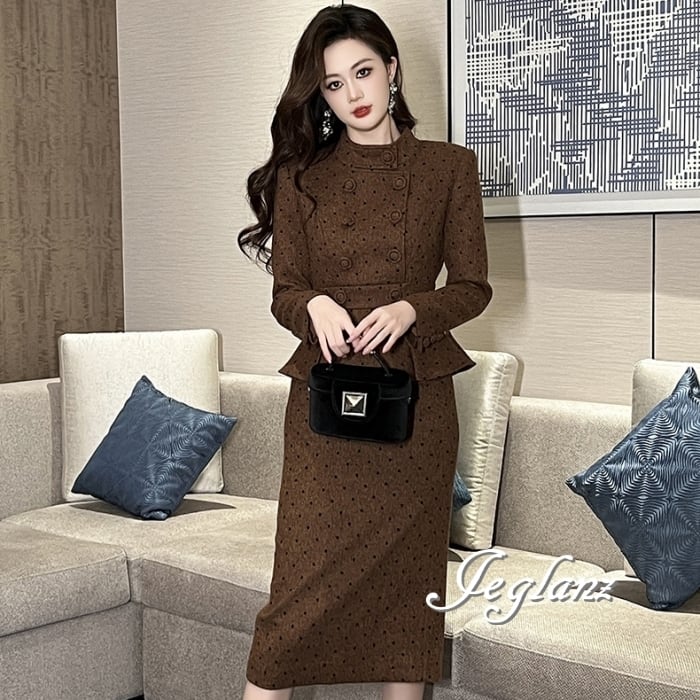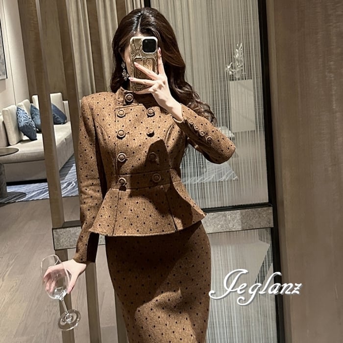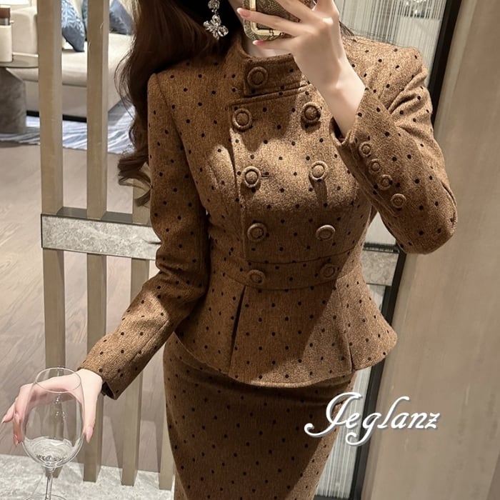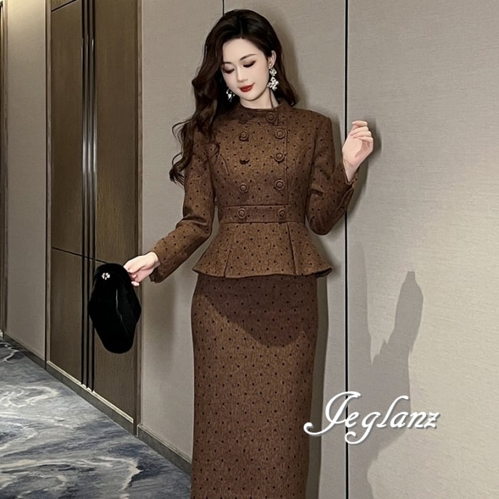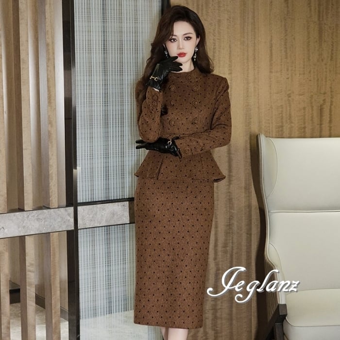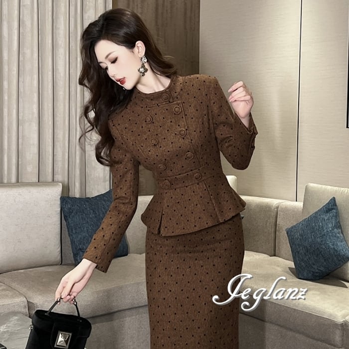 パーティ ドレス フェイク ワンピース 水玉 ペプラム 袖ボタン(MB303)ζ
