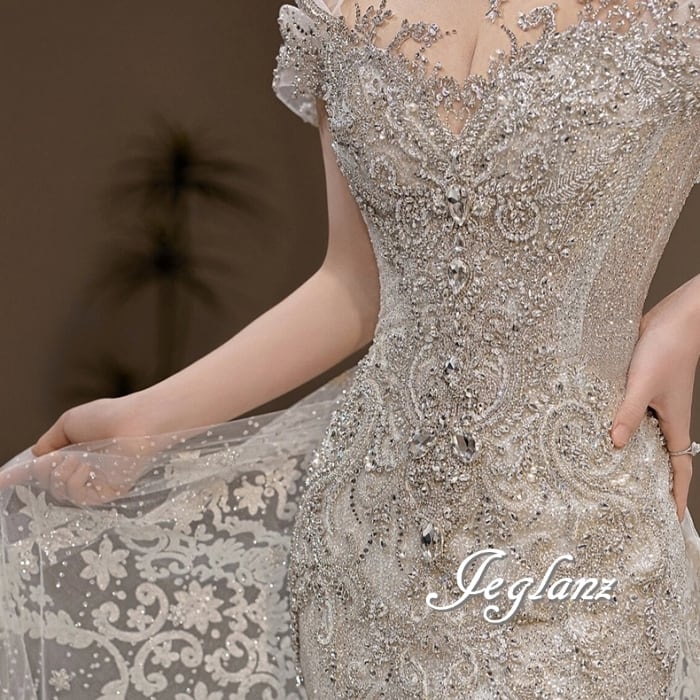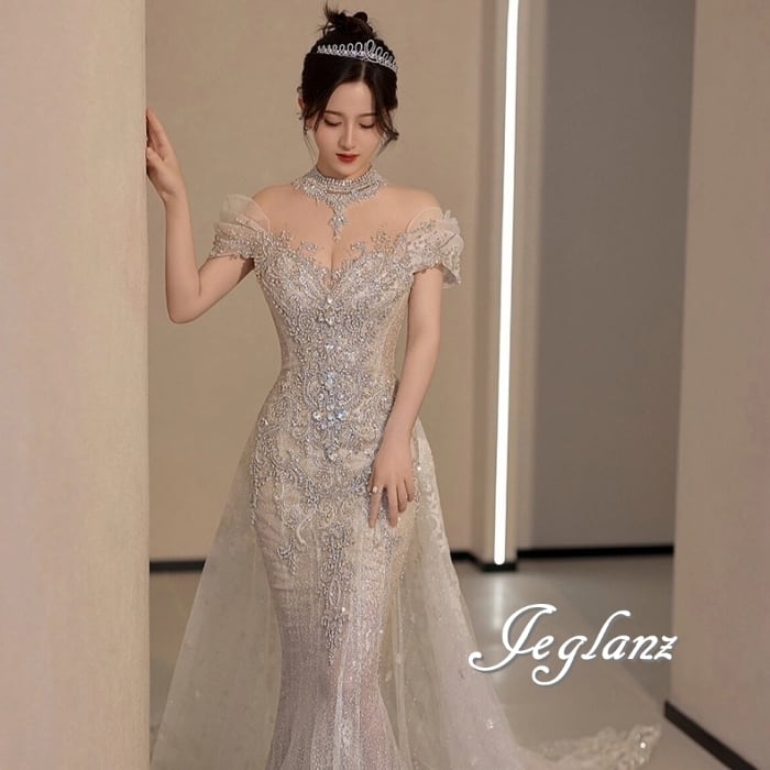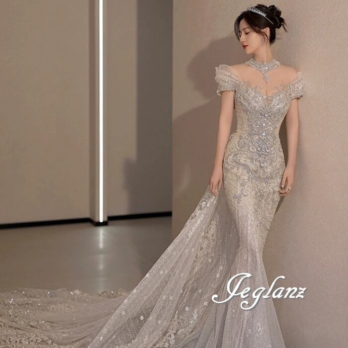 後ろ姿の魅力をアップしてくれるバックトレーンが優雅なドレス