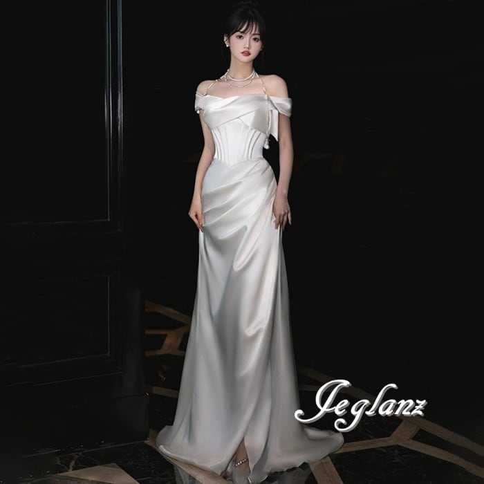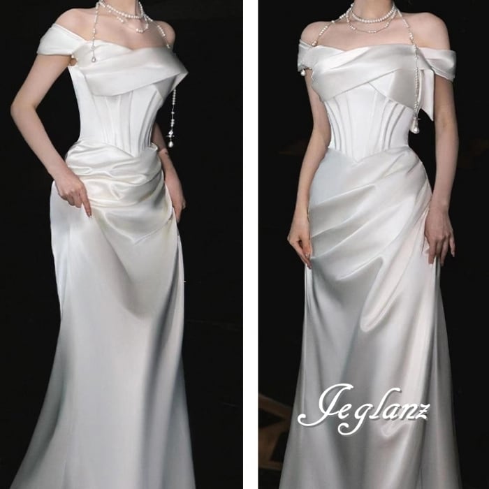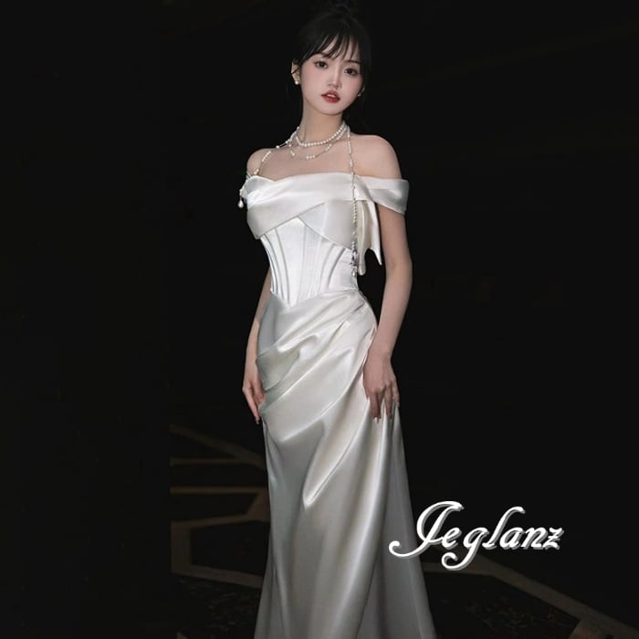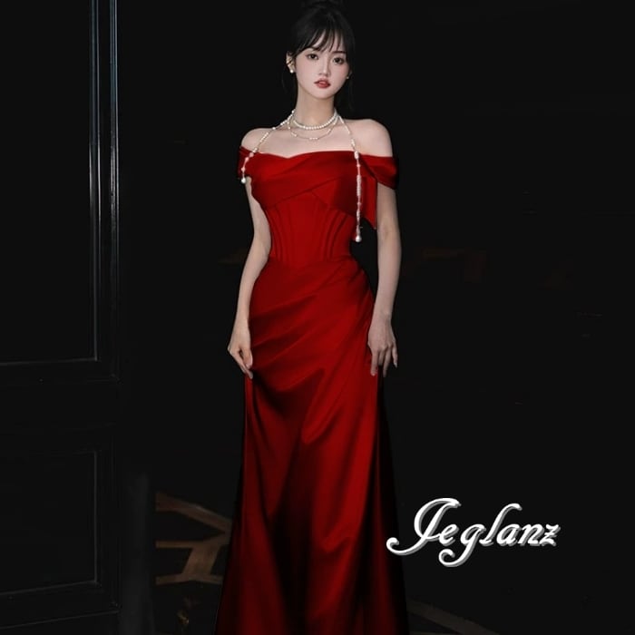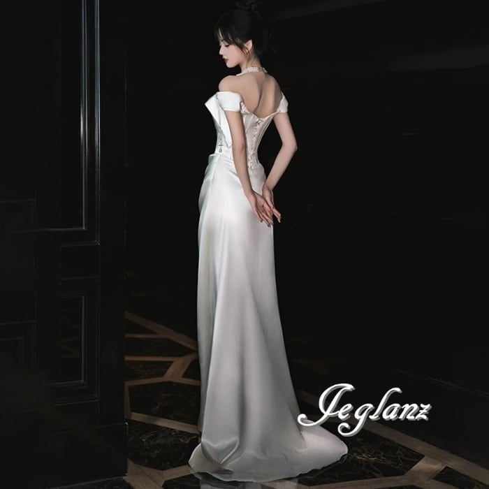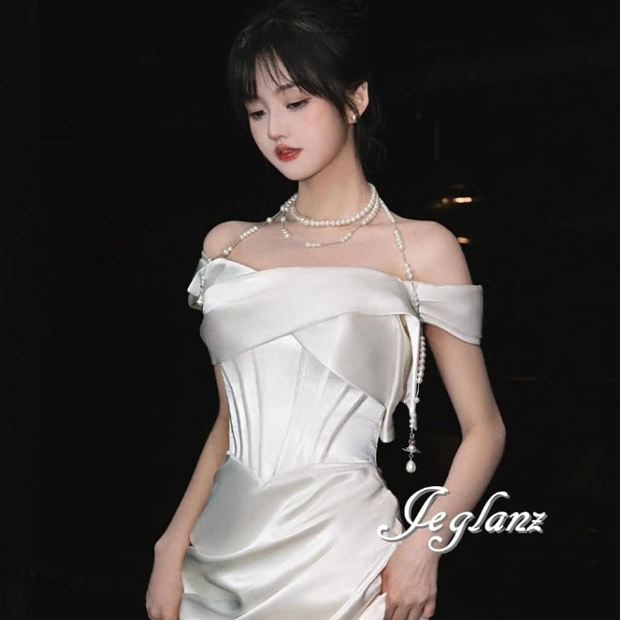 ウエディング カラードレス オフショルダー パール 編み上げ 4色(MB321)π