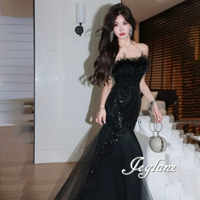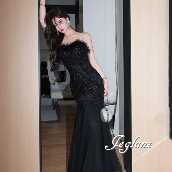 パーティ イブニング フェザードレス ベアトップ ファンシー 光沢感(MB402)η