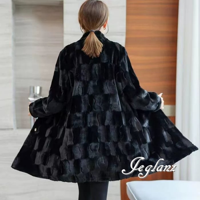 2色 ファー エコファ コート チェック柄 ボタン 大きいサイズ ♪(MB403)φ