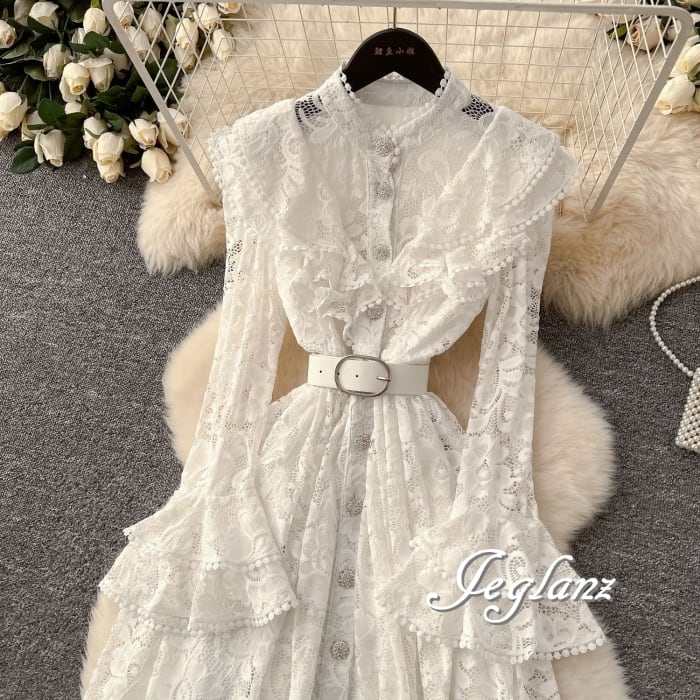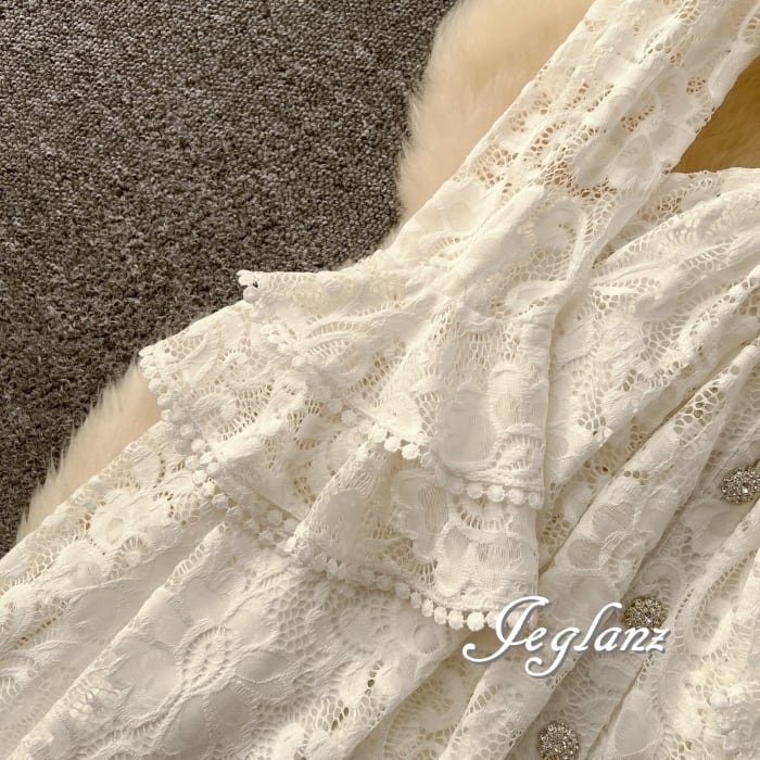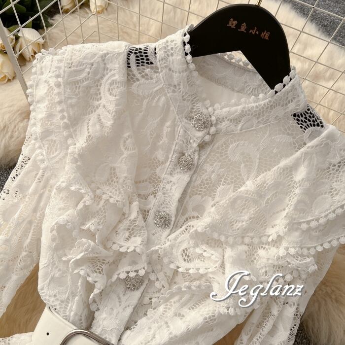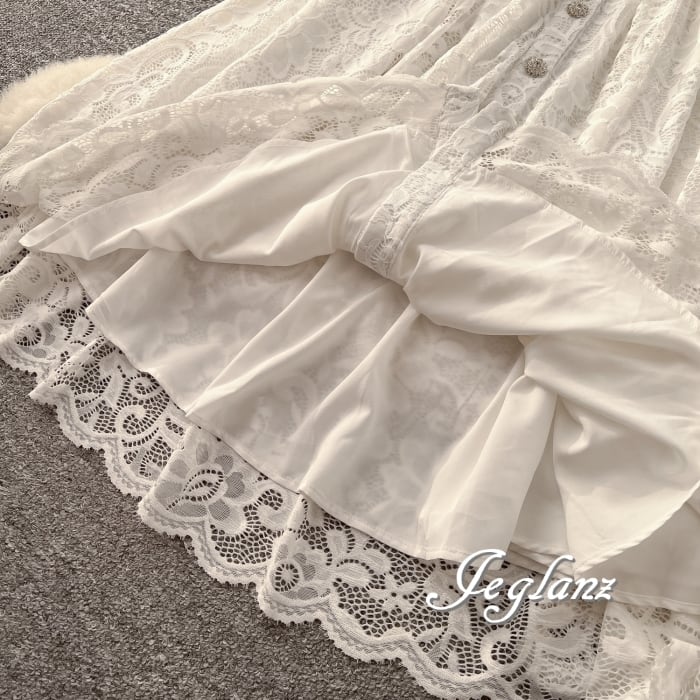 スカラップの襟に繊細なレースを施し、ドレッシーな仕上がり◎