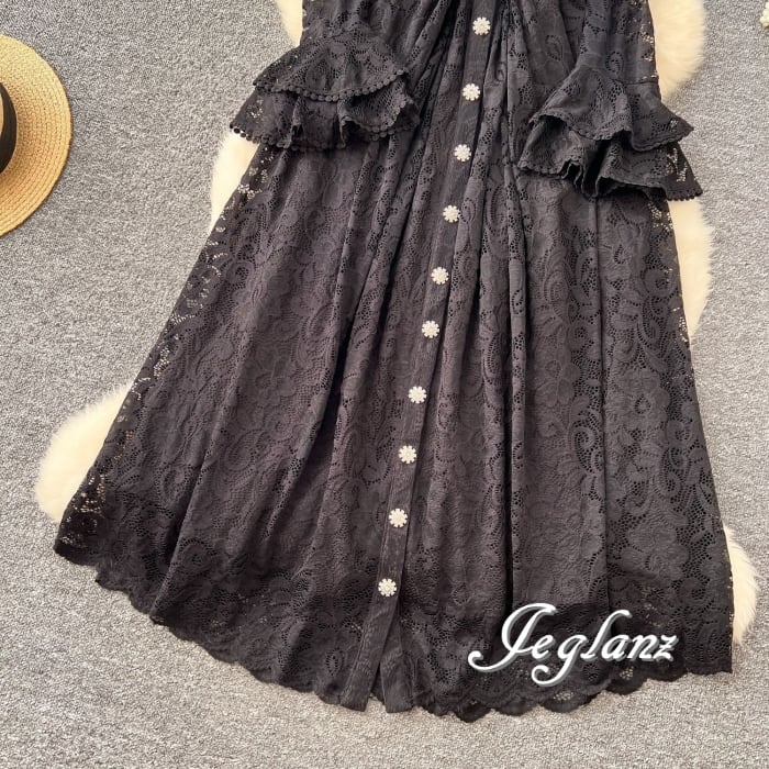 2色 フリル レース 刺繍 ワンピース ビジュー クラシカル(MB412)ζ