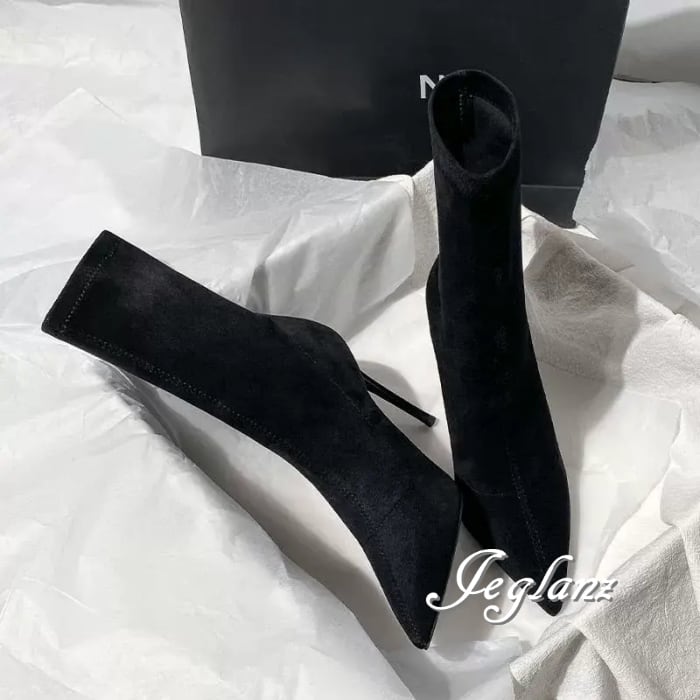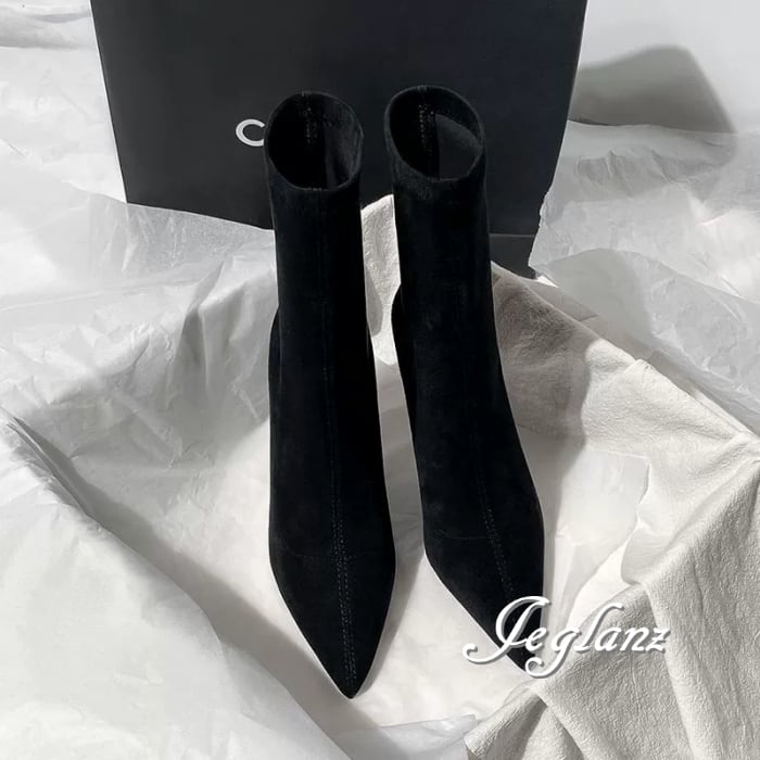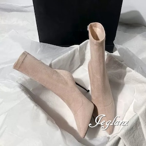2色 ミドル ブーツ スエード調 ポインテッドトゥ 5.5cm/7cm/9cm(MB422)ω