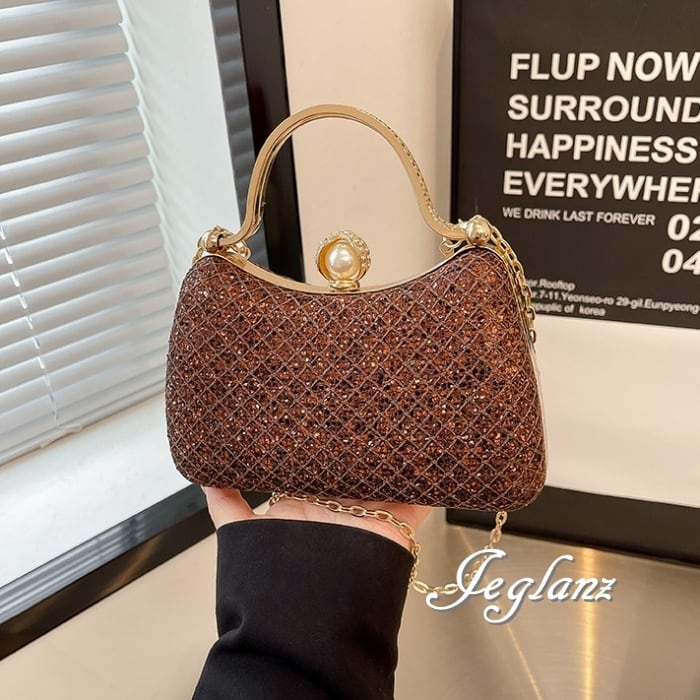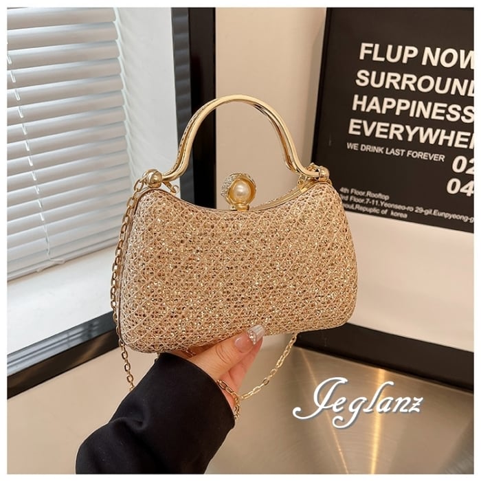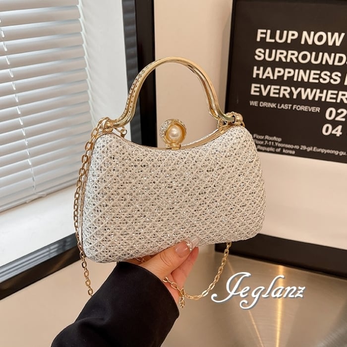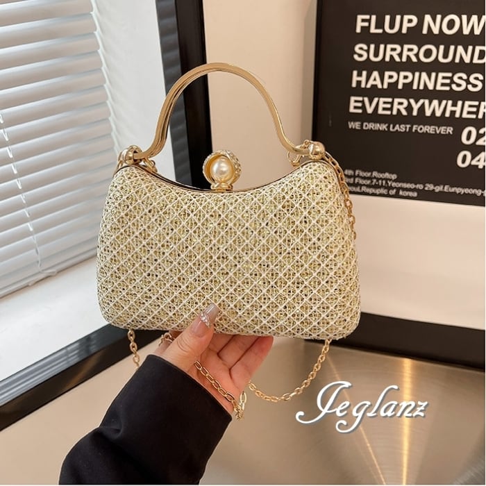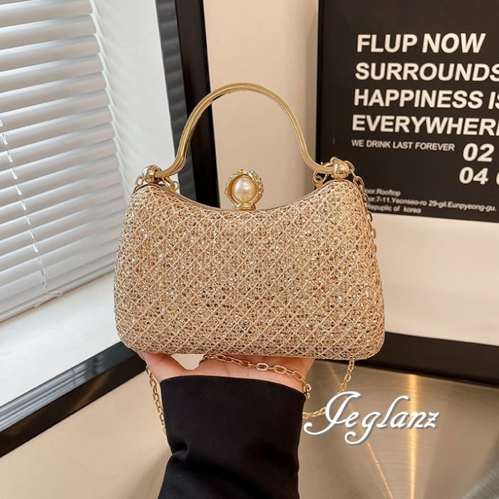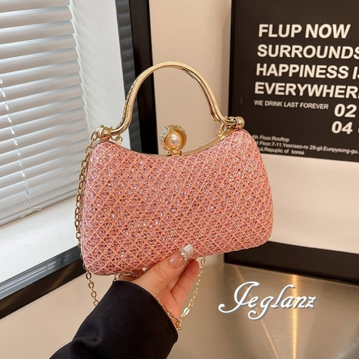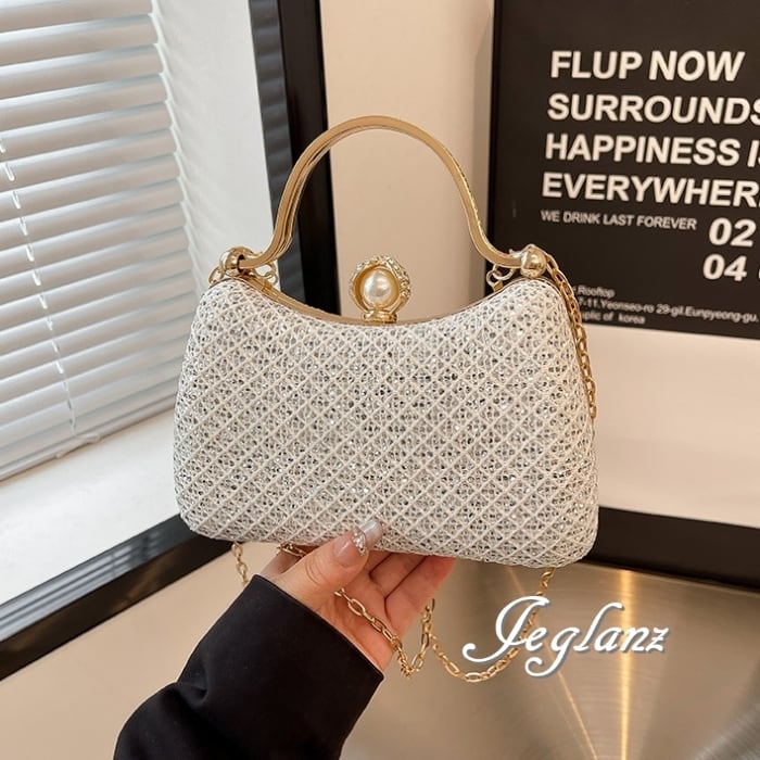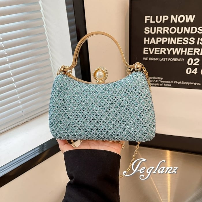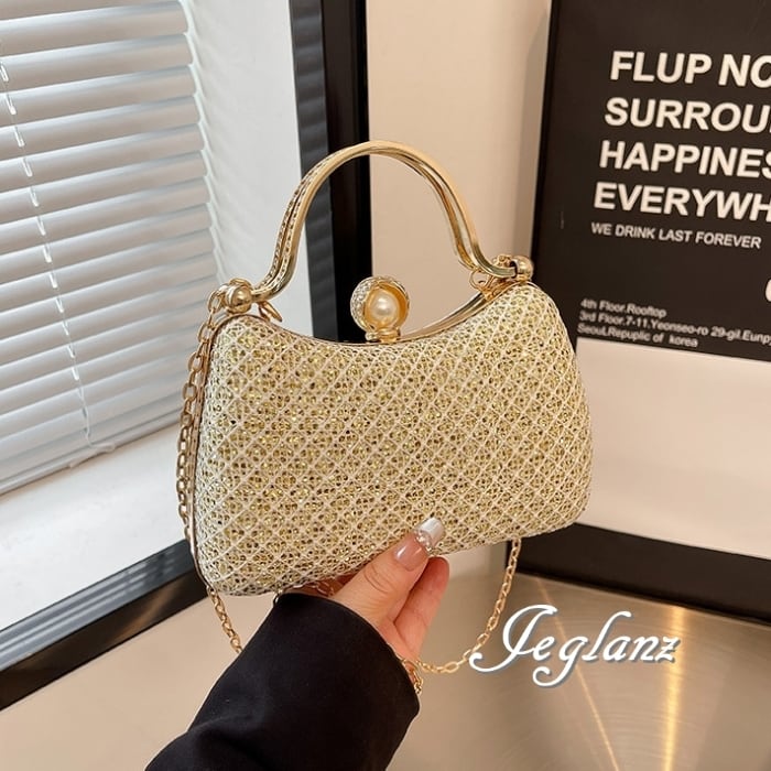 パーティ 結婚式 バック メタル持ち手 グリッター ラメ 2way 7色(MB423)ν