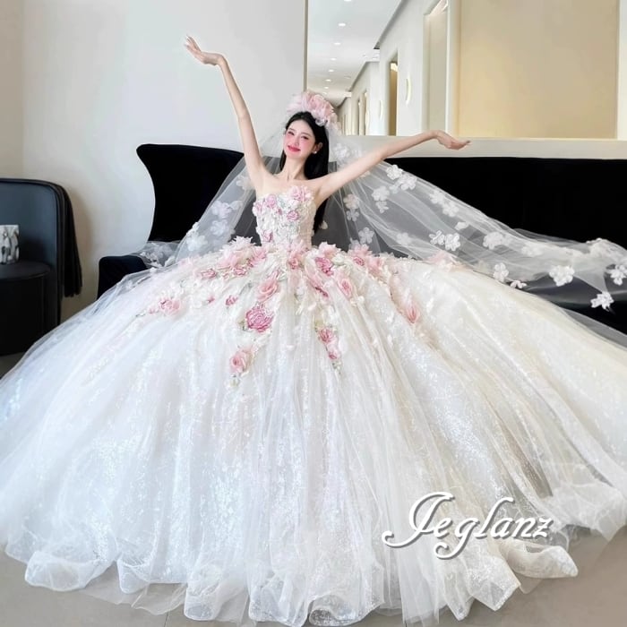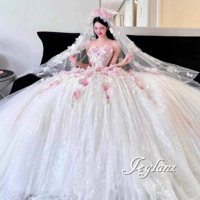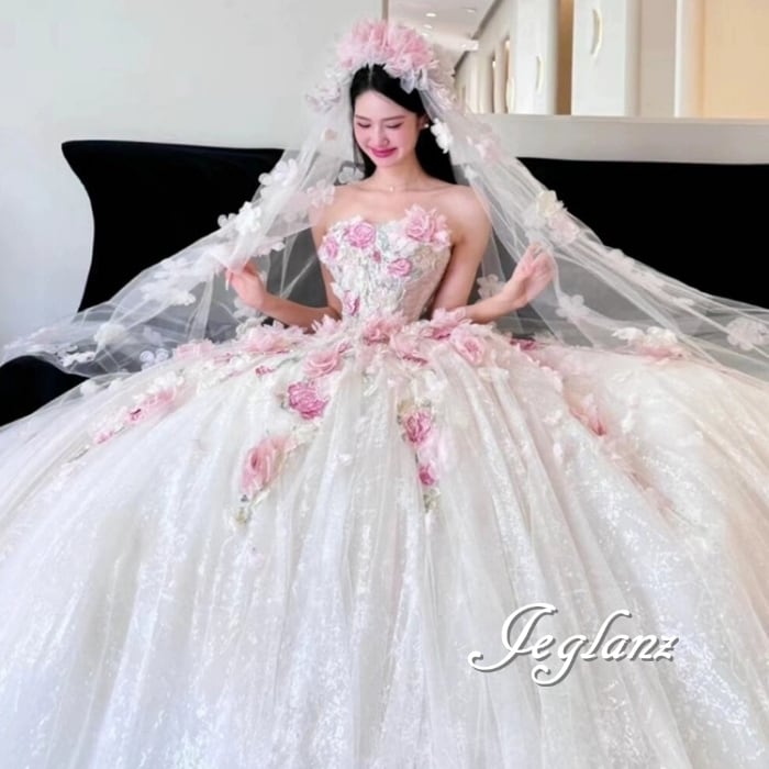 豪華 3点セット 立体フラワー ベアトップ ベール ペチコート ♪(MB432)ζ