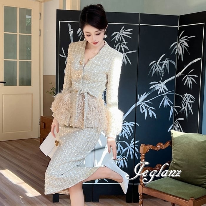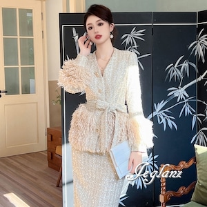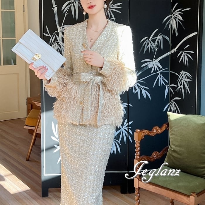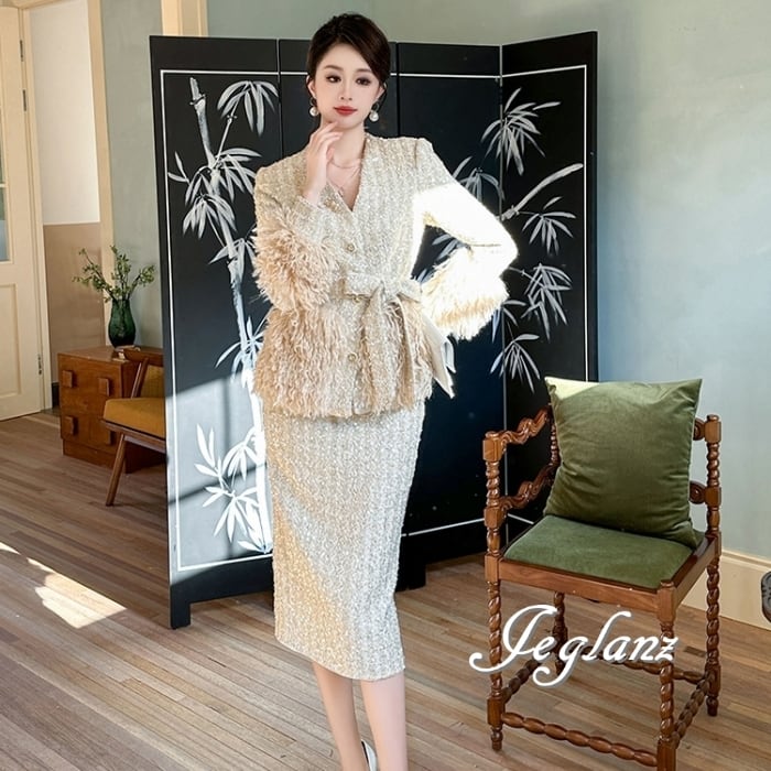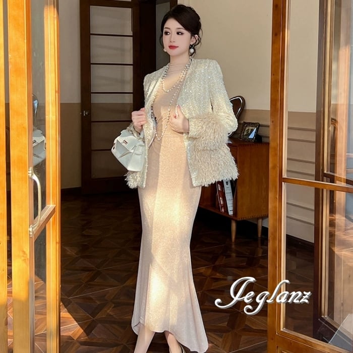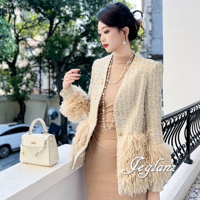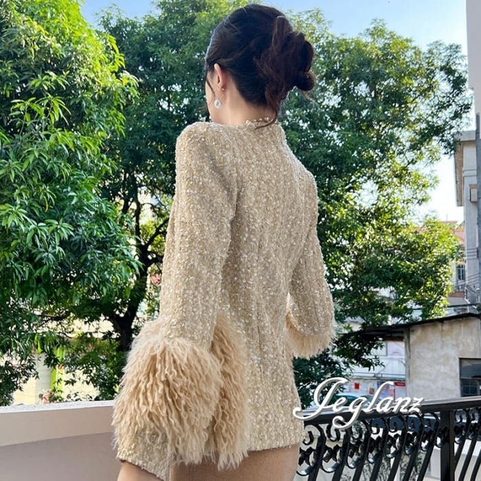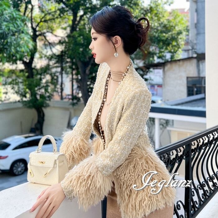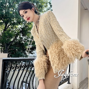 ツイード ニット ジャケット 配色 フリンジ キラキラ 光沢感 ♪ (MB435)τ