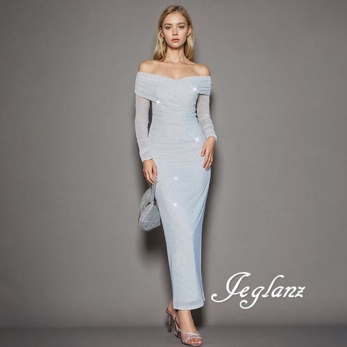 4色 パーティ ドレス マキシ ワンピース シャイニー キラキラ 光沢感(MB451)ζ