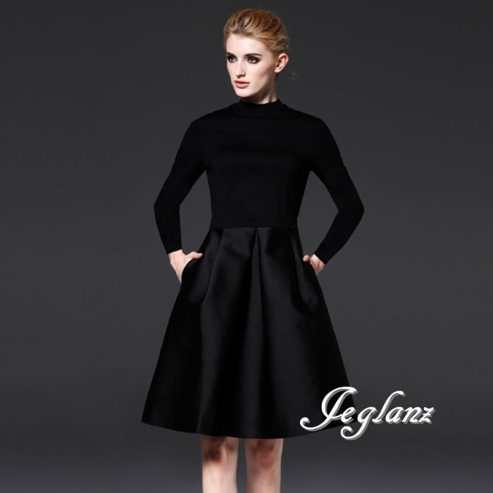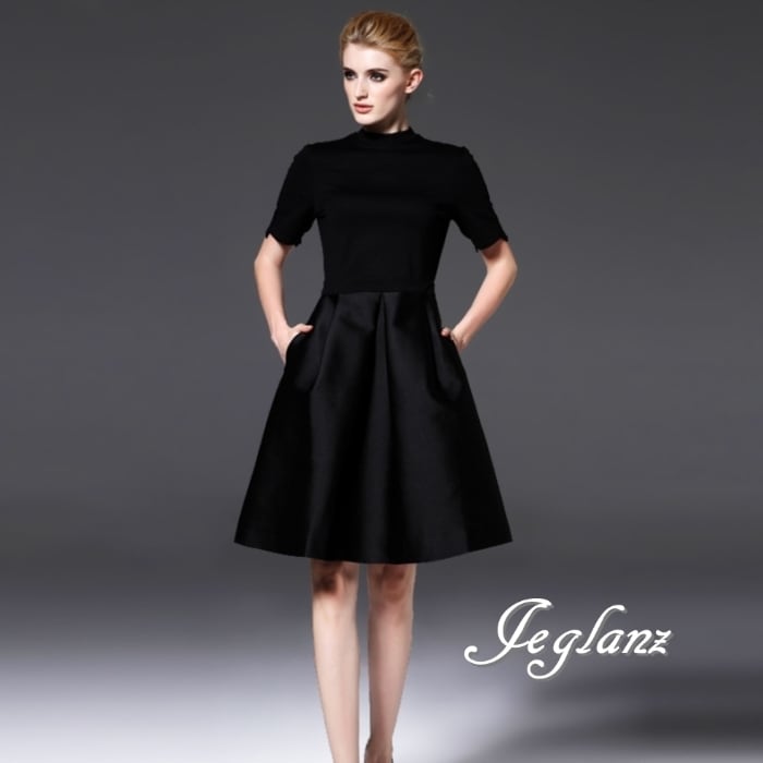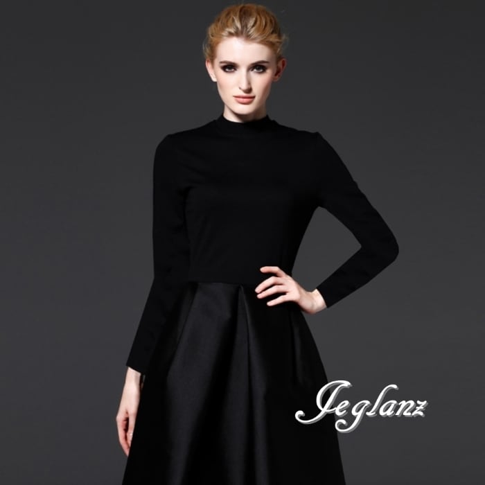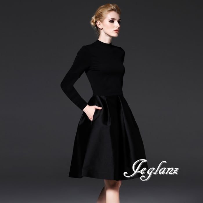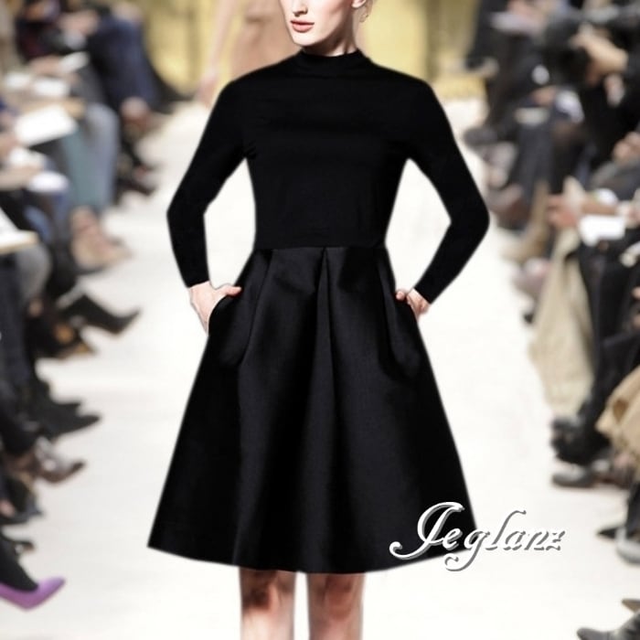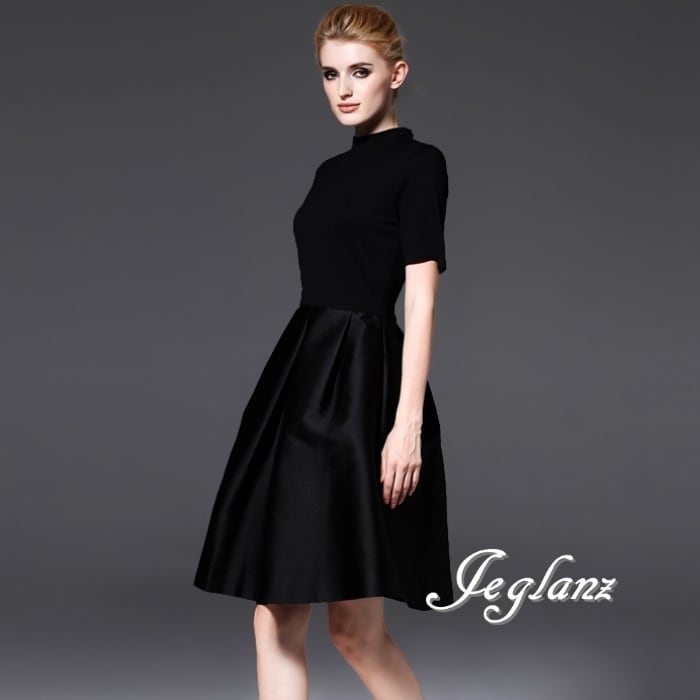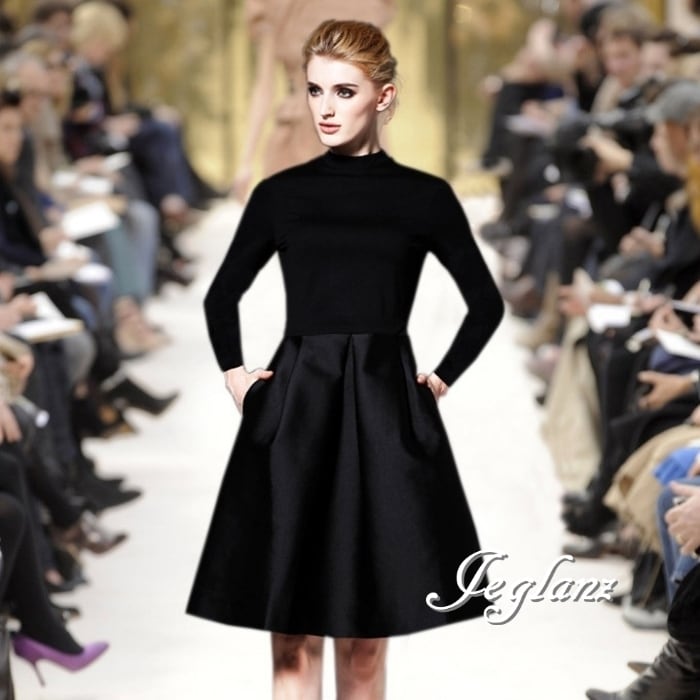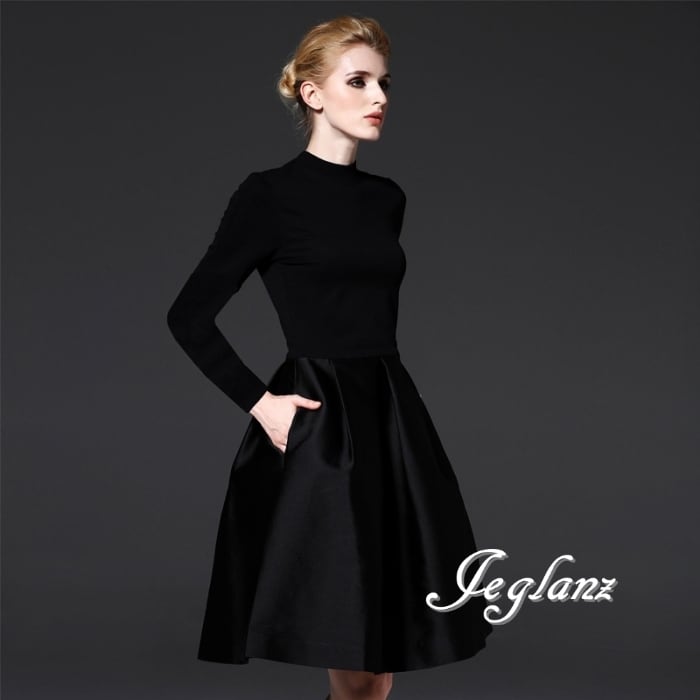パーティ ブラック ドレス ハイネック クラシカル 長袖/半袖(MB452)ζ☆