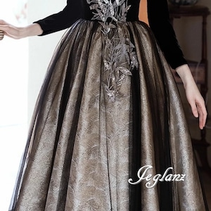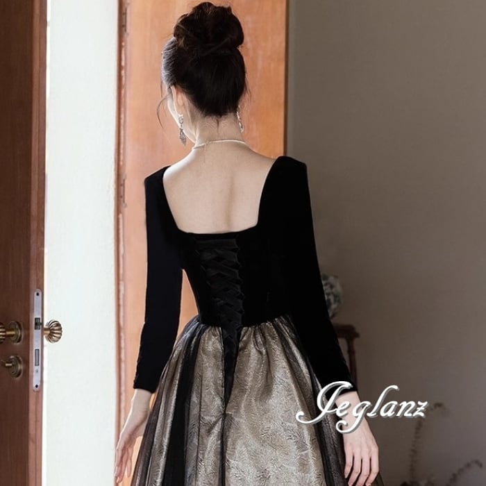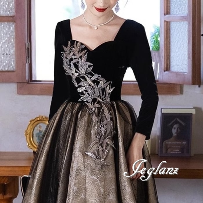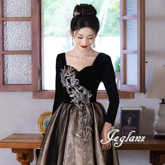 パーティ イブニングドレス リーフ柄 ビジュー 背中開き 編み上げ 肌見せ ♪(MB461)ζ
