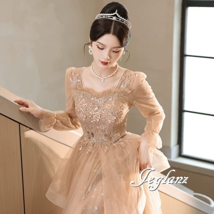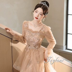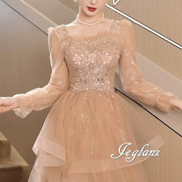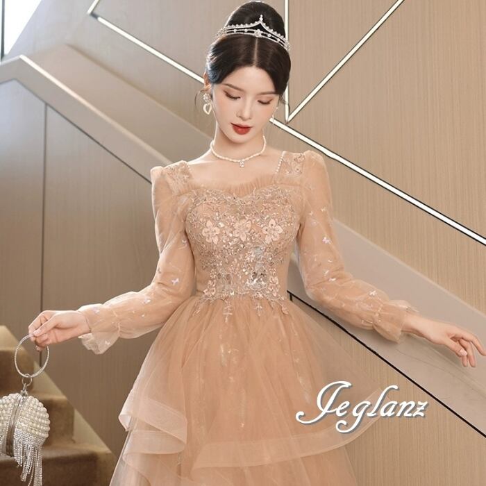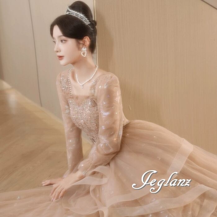 チュール素材と輝くビジューがエレガントな印象を与えつつ、