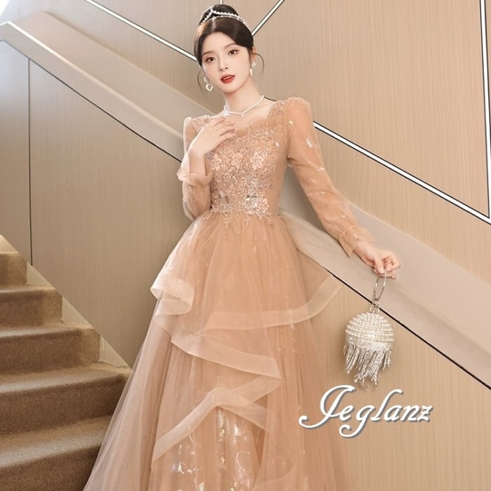 華やか イブニングドレス チュール 蝶 パール レイヤード 光沢感(MB464)ζ☆