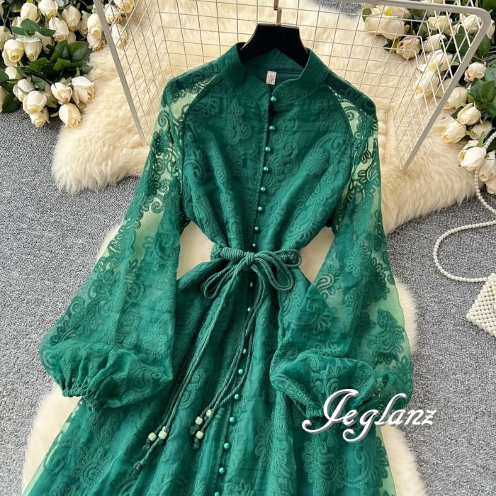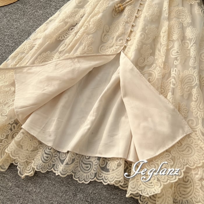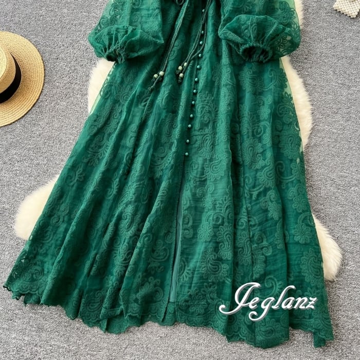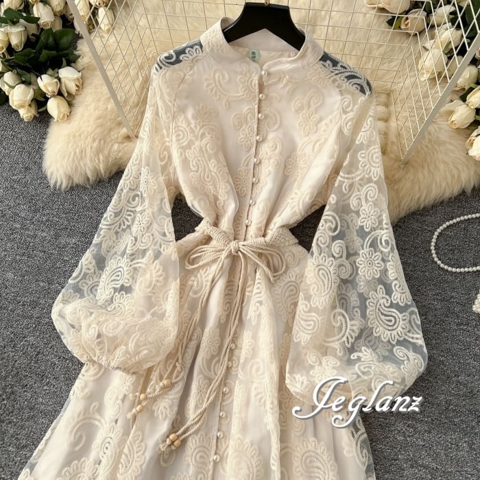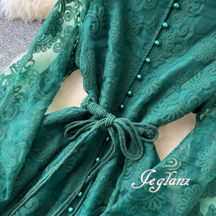 どの角度から見ても華やぎを感じる花柄総レースのワンピース
