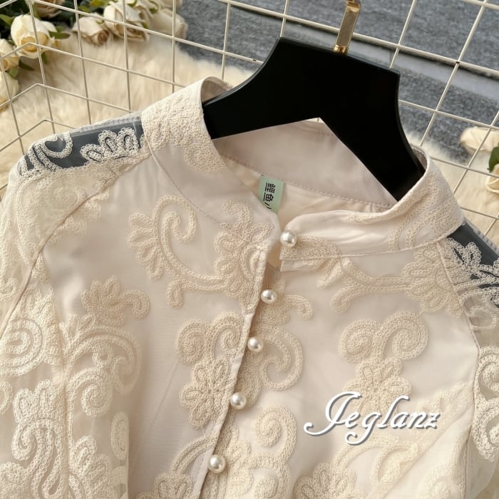 袖に透け感を取り入れることで程良く抜け感が漂うスタイル
