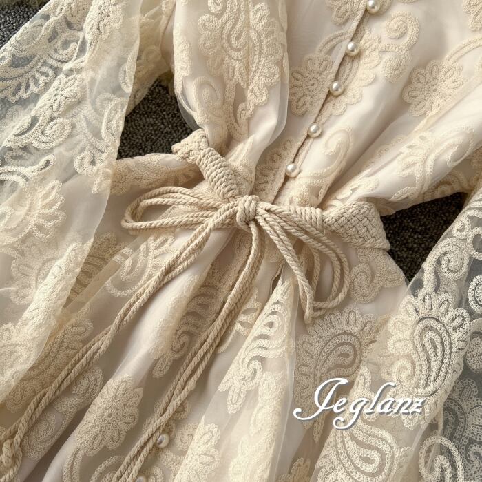 2色 ワンピース ドレス 刺繍 レース 紐ベルト ファンシー(MB465)★ ζ☆