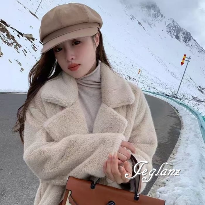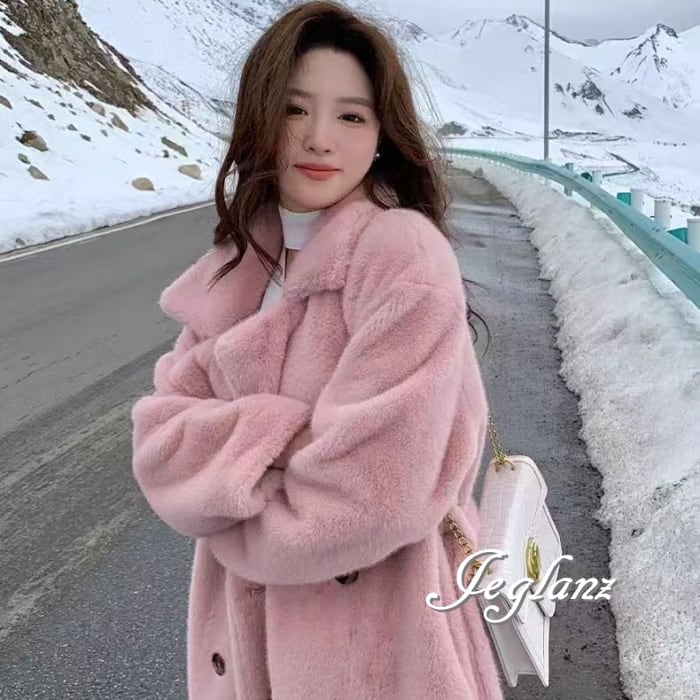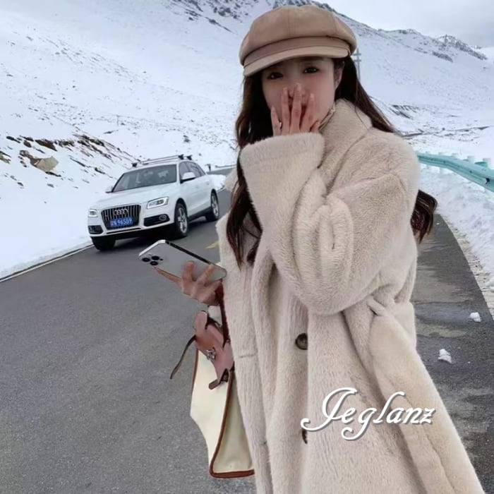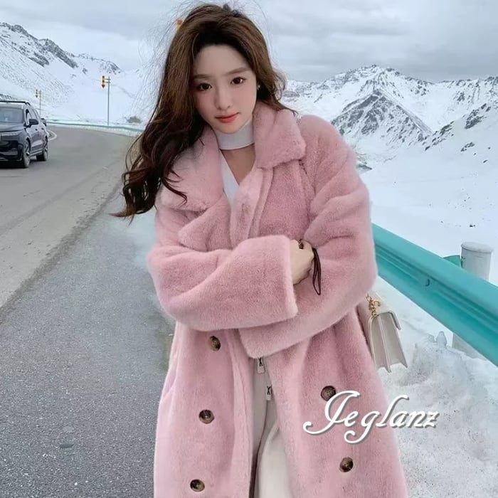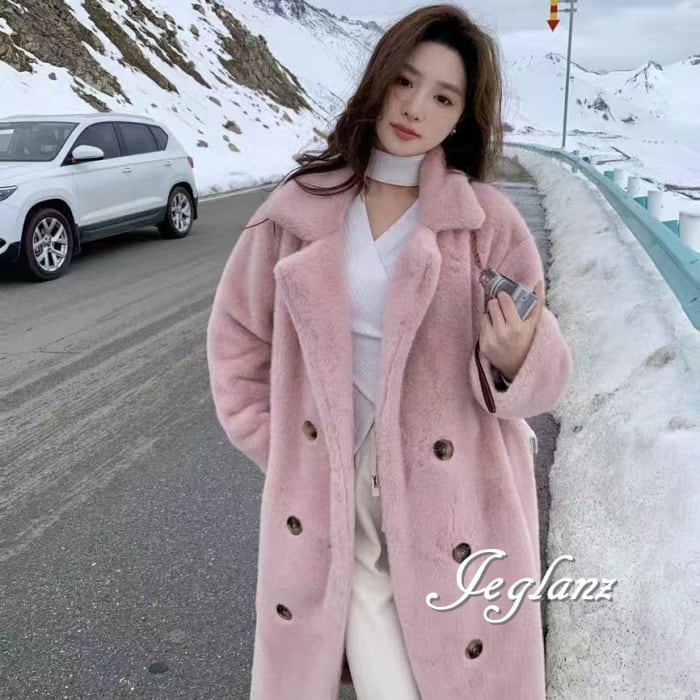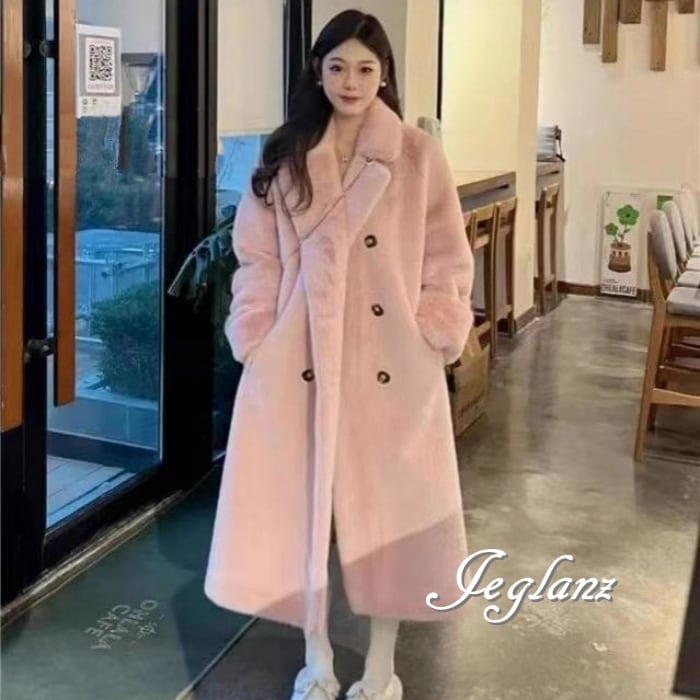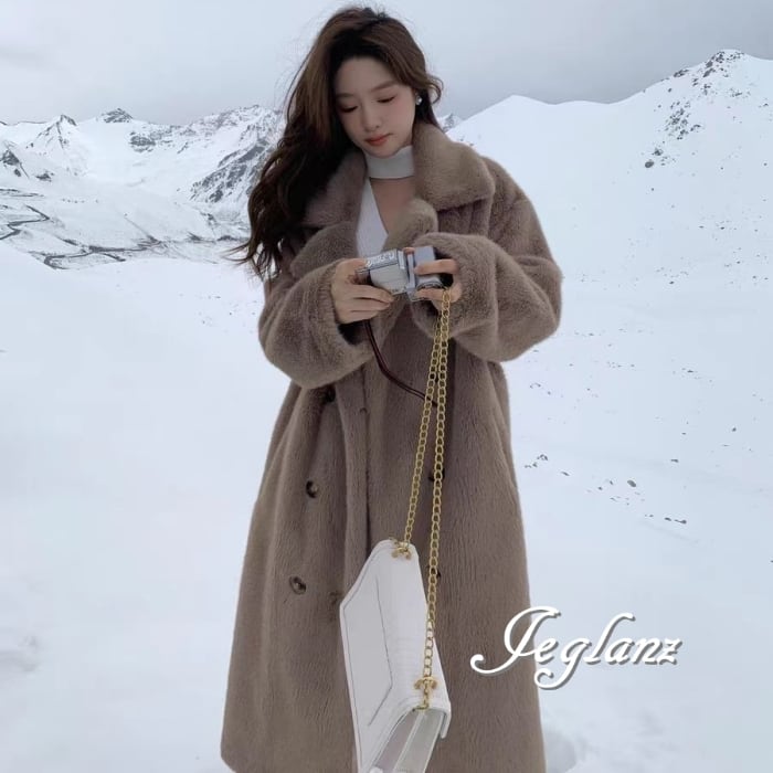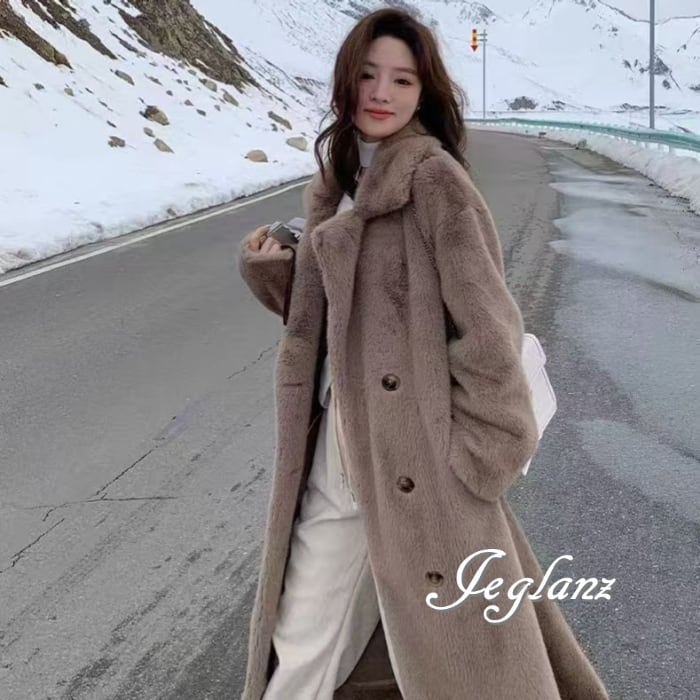 4色 ファー エコファ ロング コート 襟付き ダブルブレスト (MB481)φ