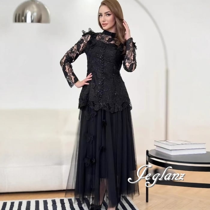 蝶のモチーフが付いたマキシスカートとのセット