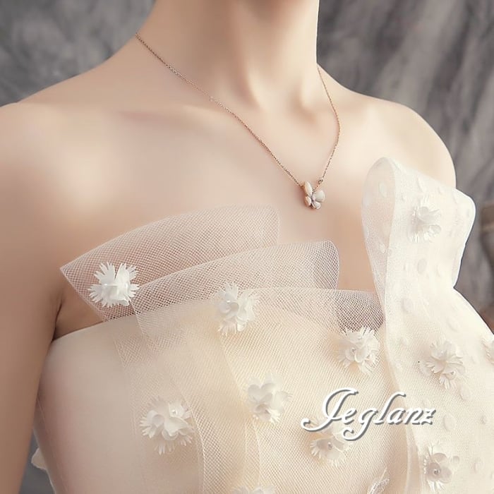 チュール素材が重なり合い、上品な透け感を演出します